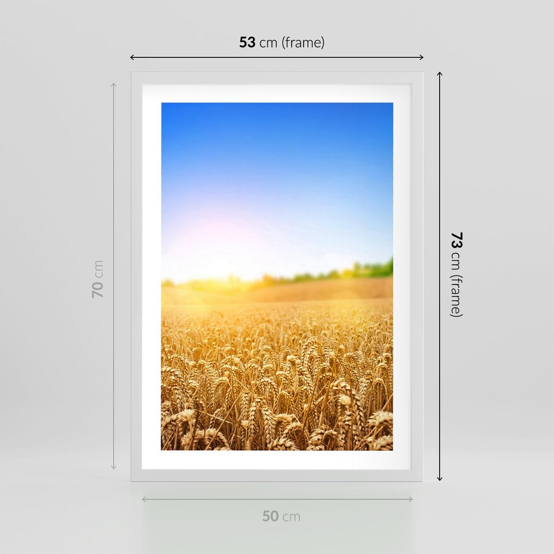 Plakat w ramie 50x70 - Żyzne Pola - pole, pszenicy - rama biała