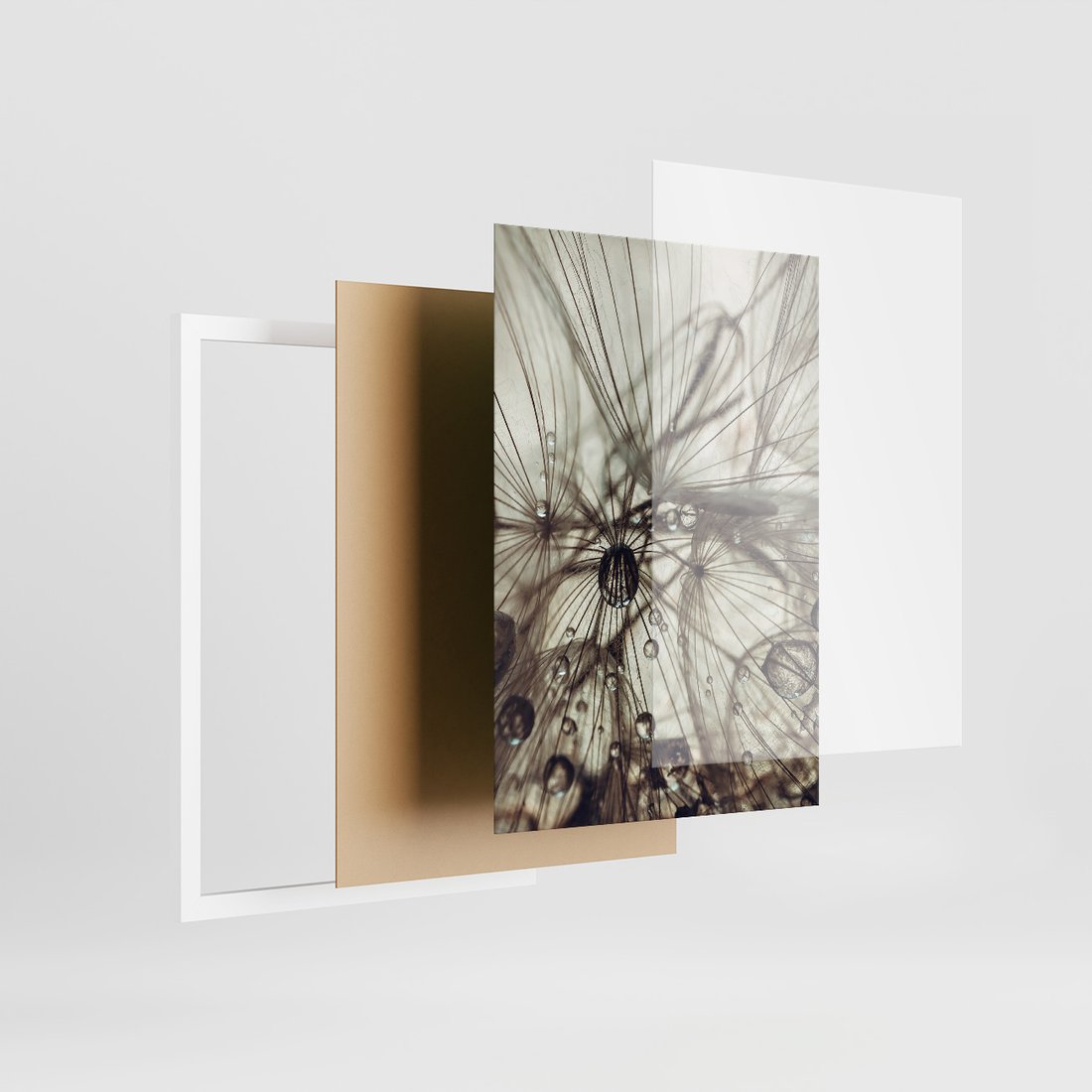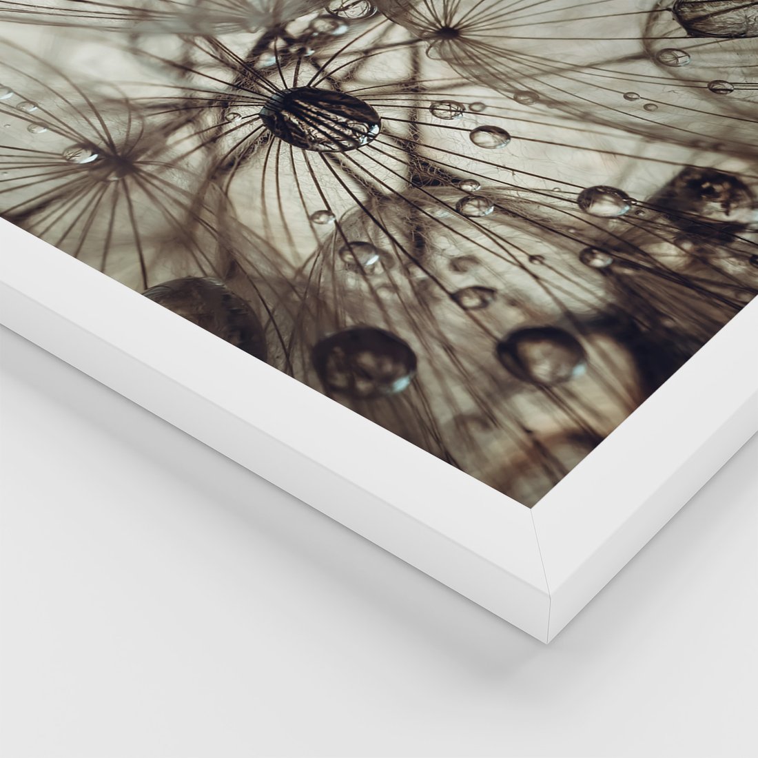 Zestaw obrazy w ramie 30x40 galeria - Dmuchawce, krople, wody, makro - rama biała