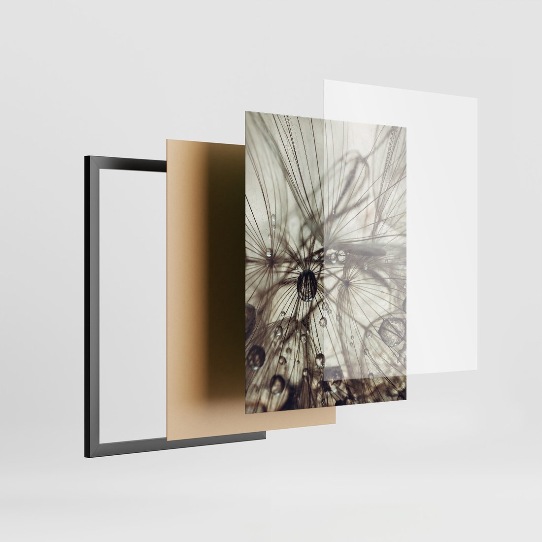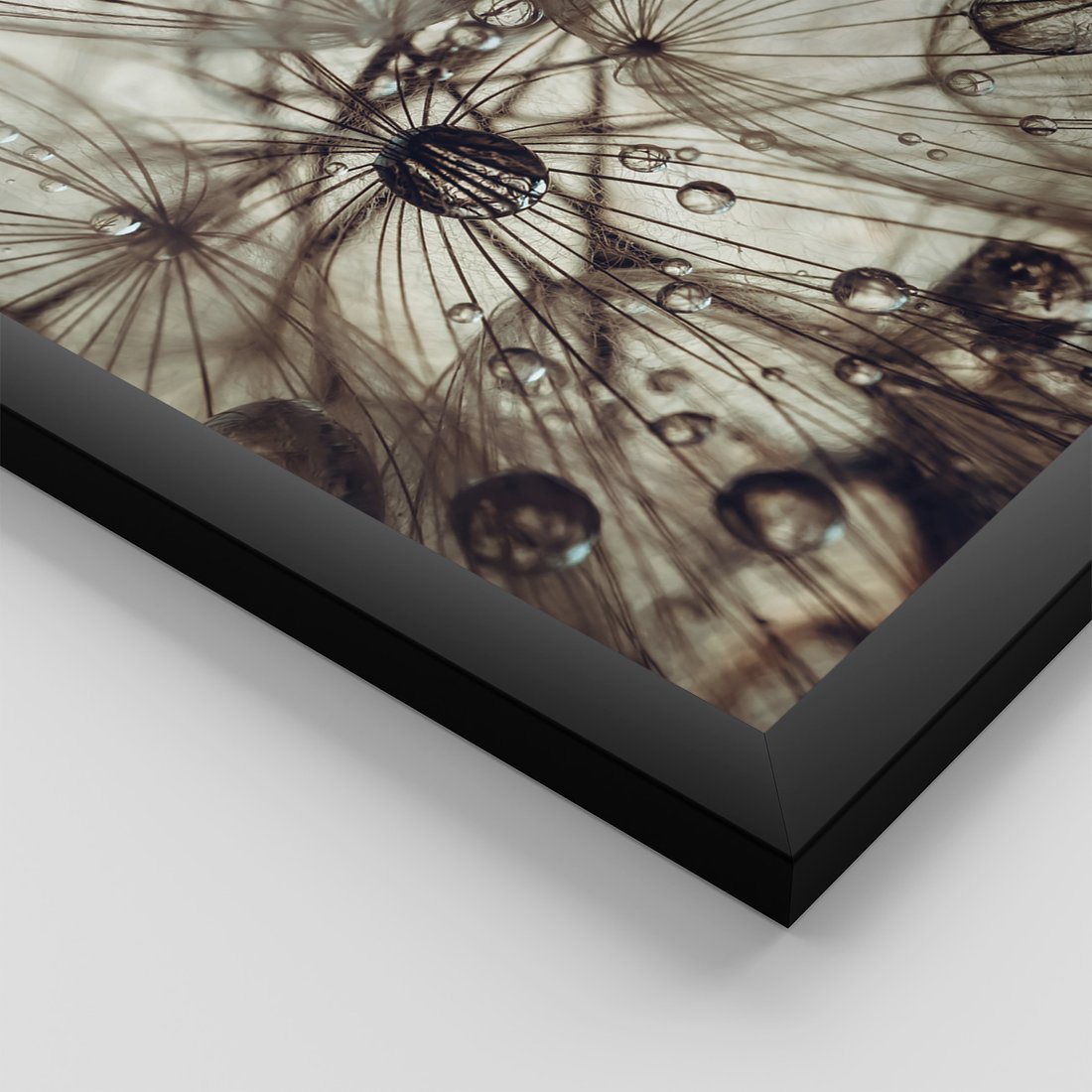 Zestaw obrazy w ramie 30x40 galeria - Dmuchawce, krople, wody, makro - rama czarna