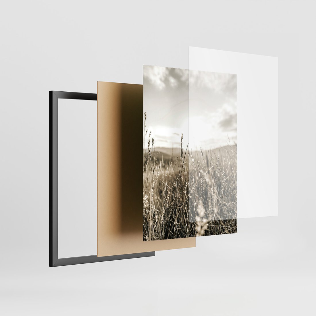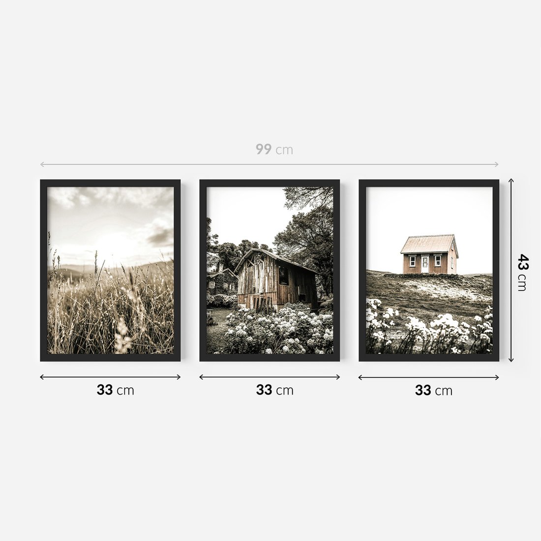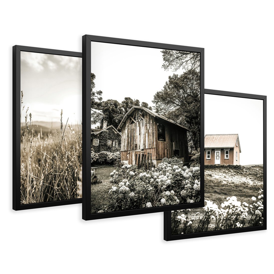 Zestaw obrazy w ramie 30x40 galeria - Domki, pola, łąki, w, sepii - rama czarna
