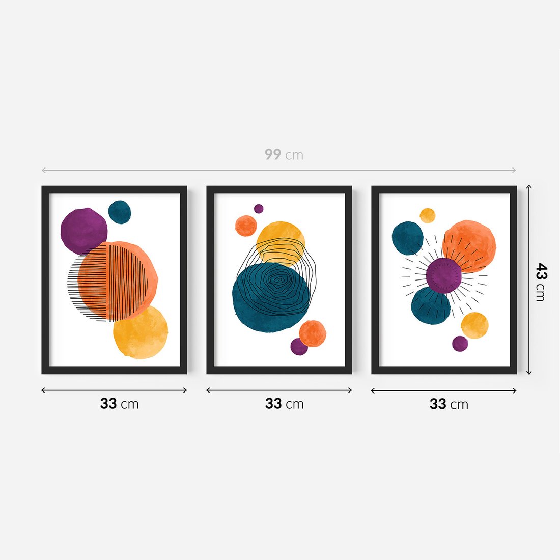 Zestaw obrazy w ramie 30x40 galeria - Geometryczne, koła, akwarela - rama czarna