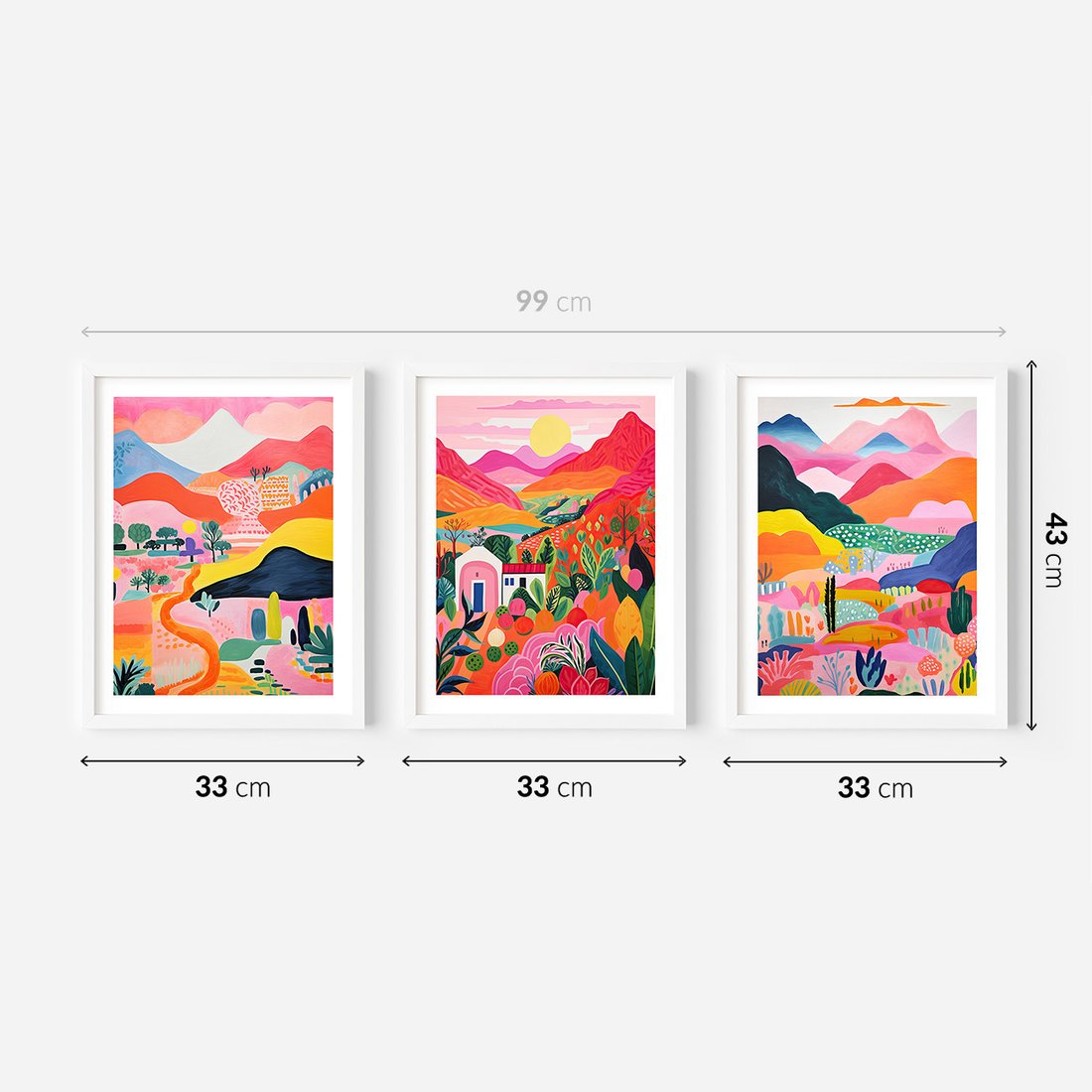Zestaw obrazy w ramie 30x40 galeria - góry, pejzaż, krajobraz, boho - rama biała