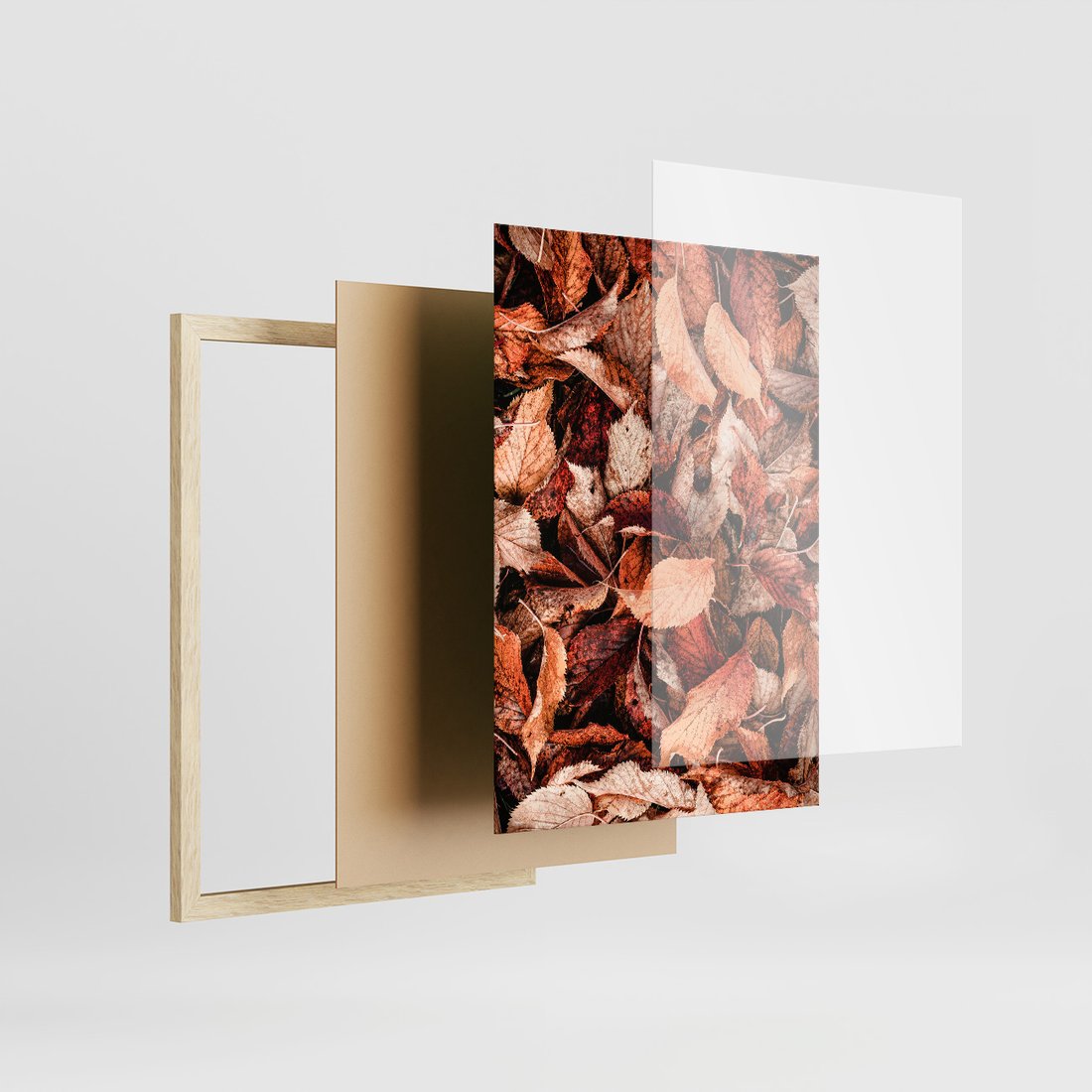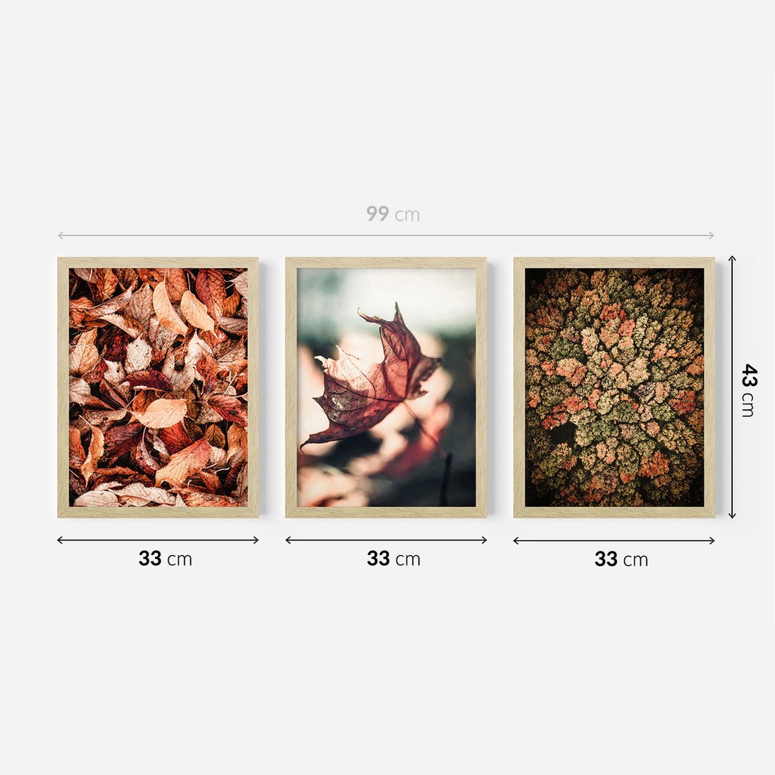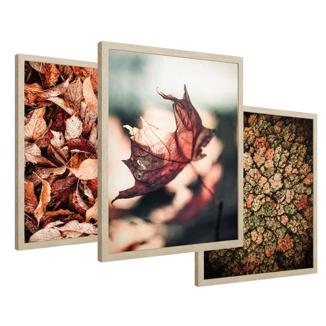 Zestaw obrazy w ramie 30x40 galeria - Jesienny, las, liście - rama drewno