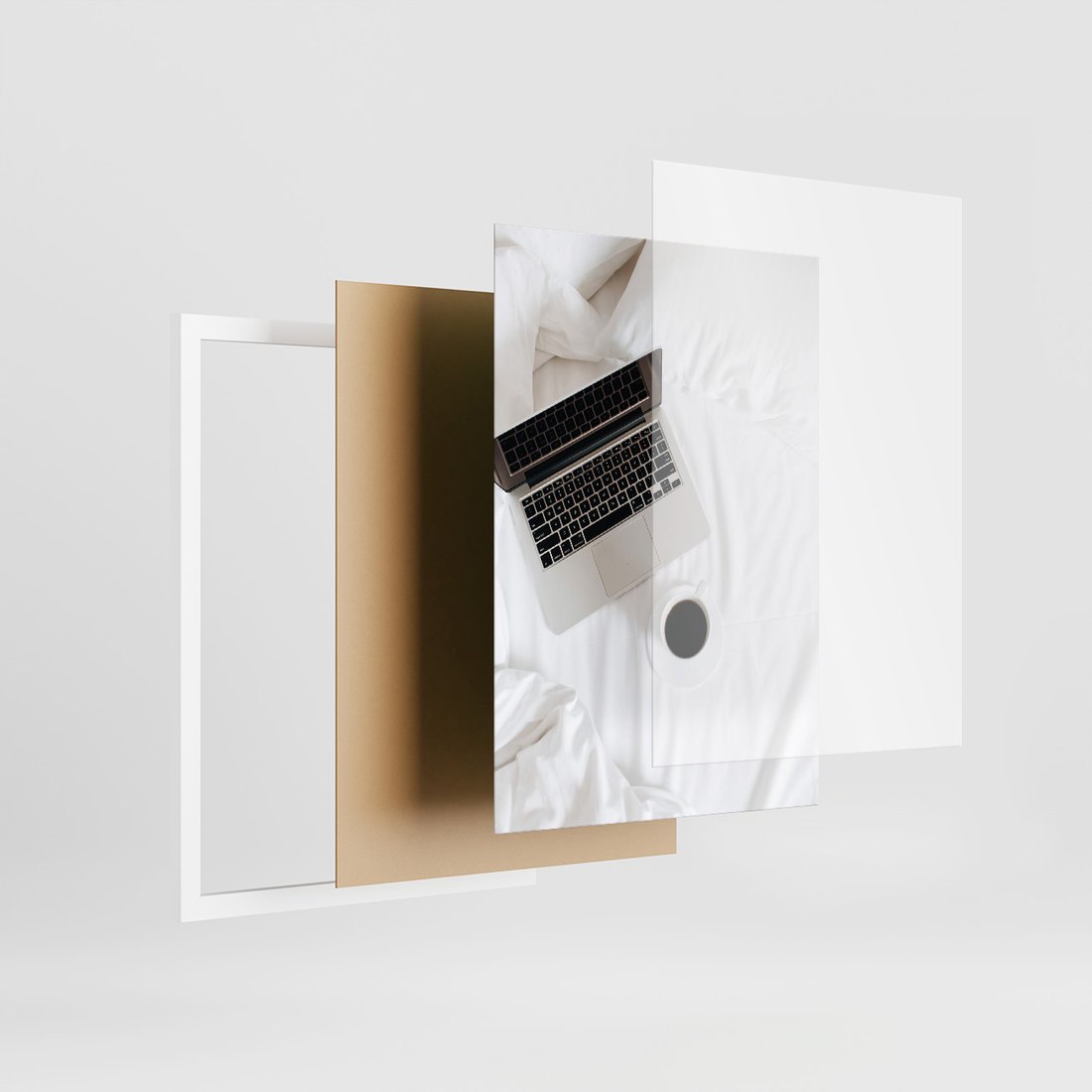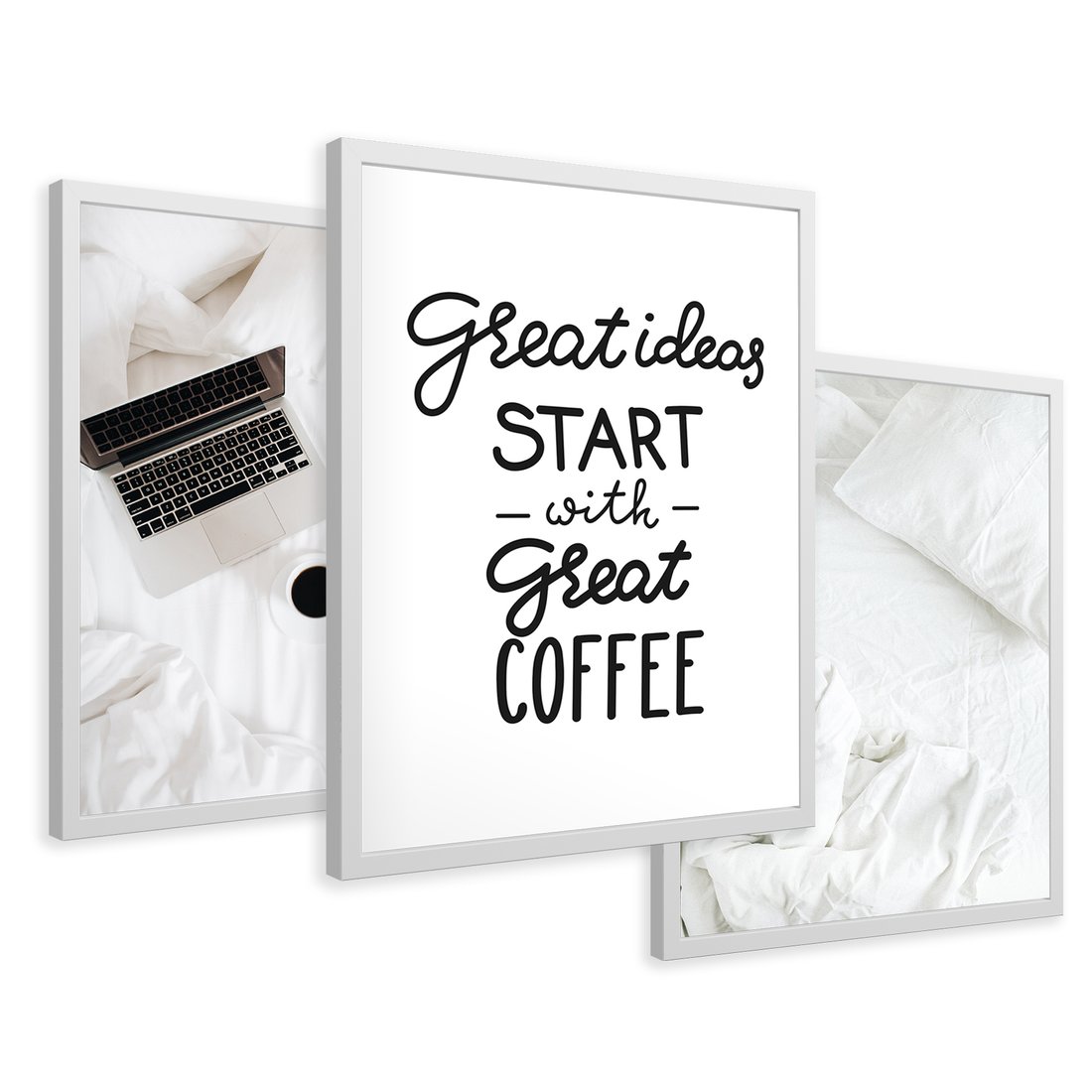 Zestaw obrazy w ramie 30x40 galeria - Kawa, praca, laptop, typografia - rama biała