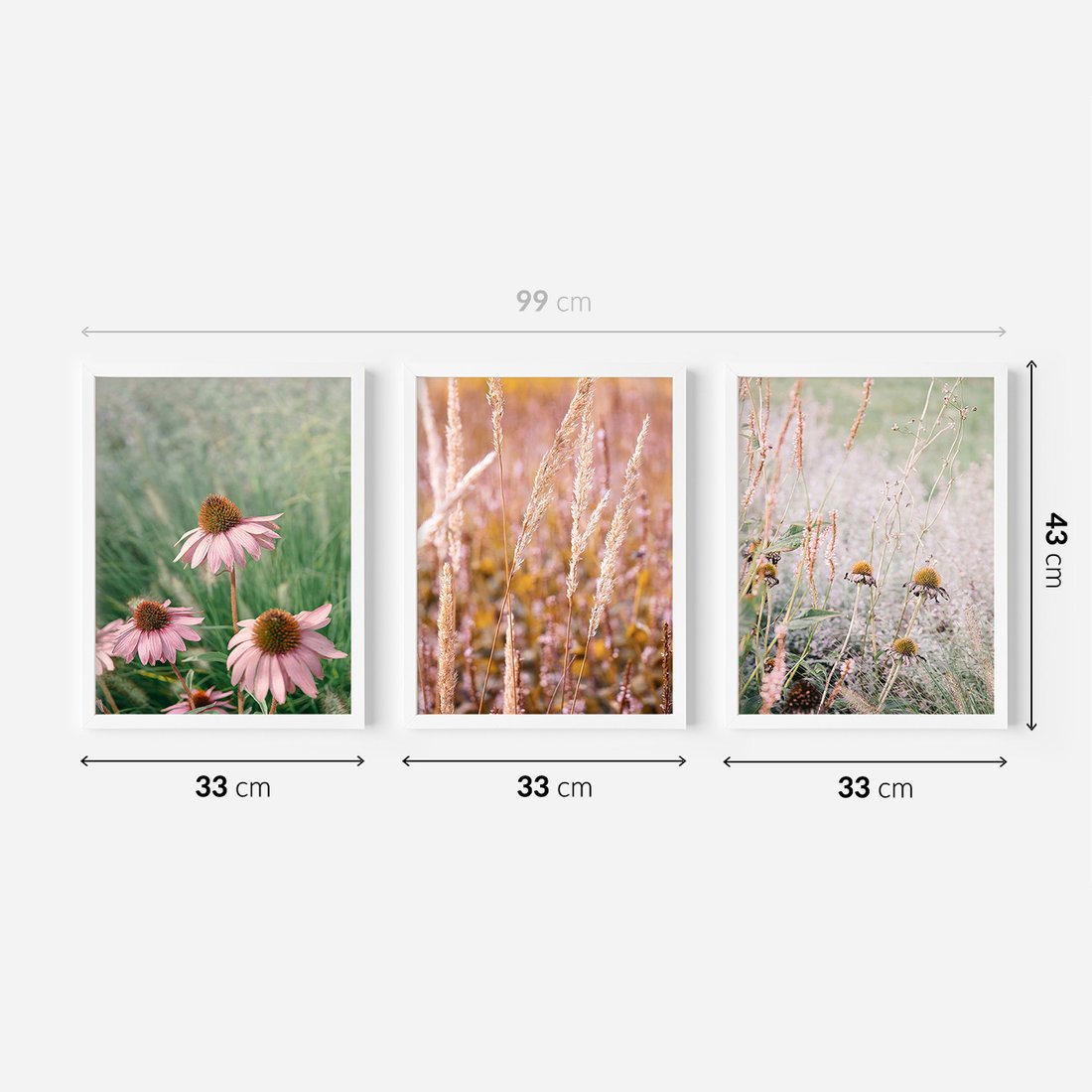 Zestaw obrazy w ramie 30x40 galeria - Kwiaty, łąka, suche, trawy - rama biała
