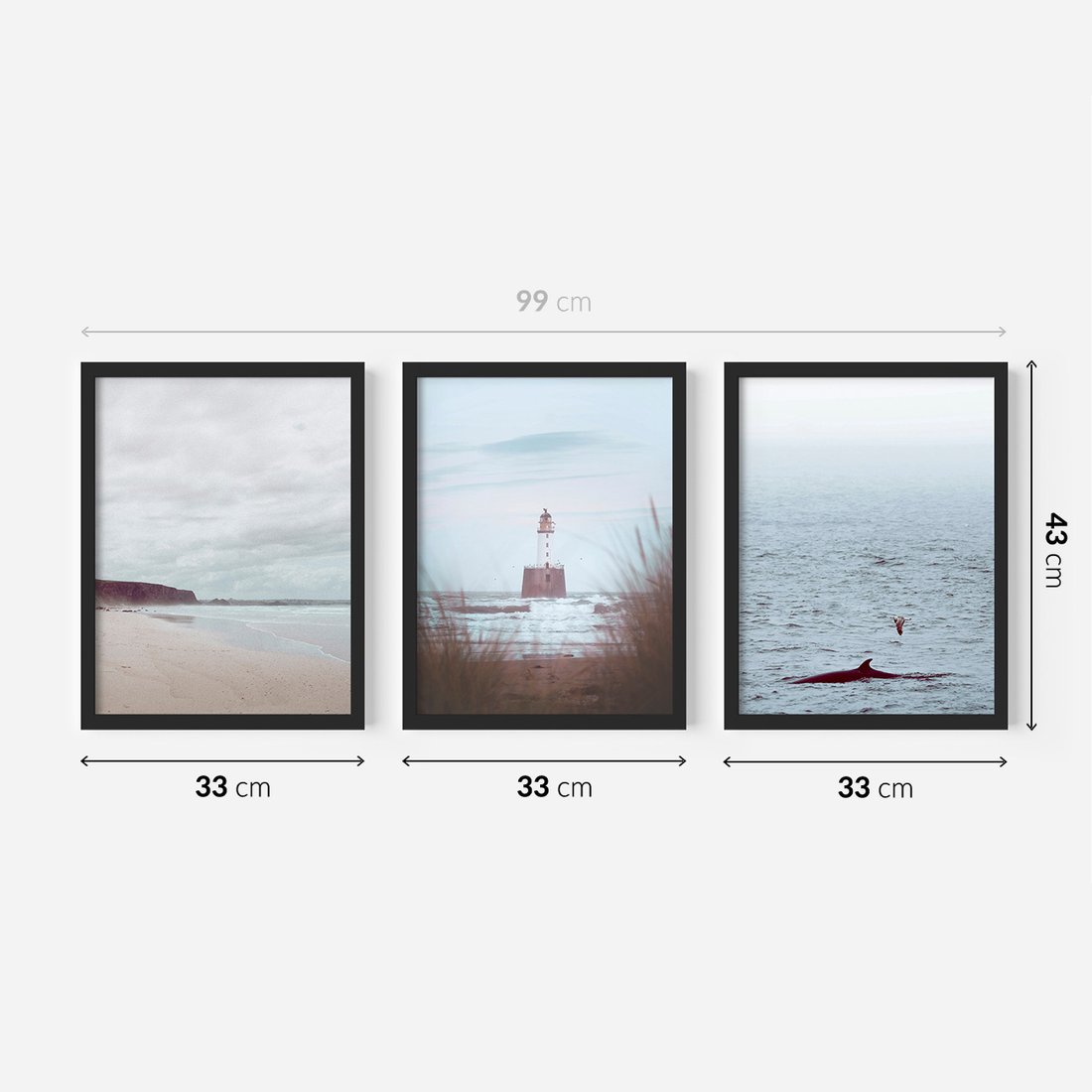Zestaw obrazy w ramie 30x40 galeria - Latarnia, mglisty, pejzaż, morze - rama czarna