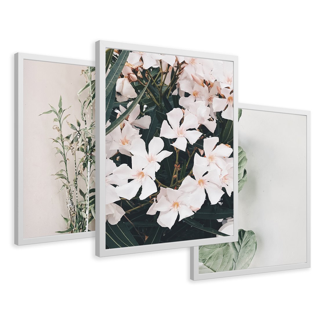 Zestaw obrazy w ramie 30x40 galeria - Liście, kwiaty, nowoczesny, styl - rama biała