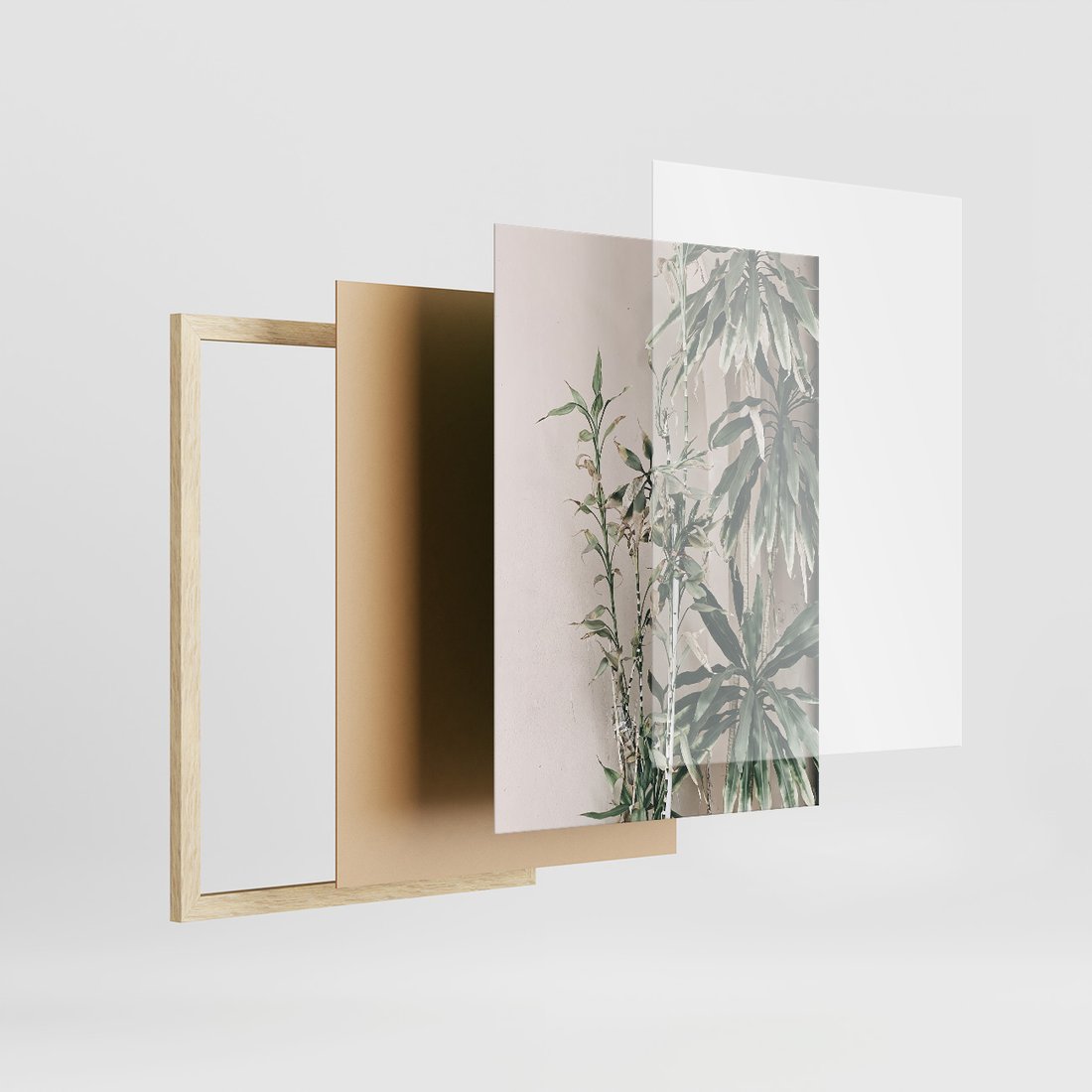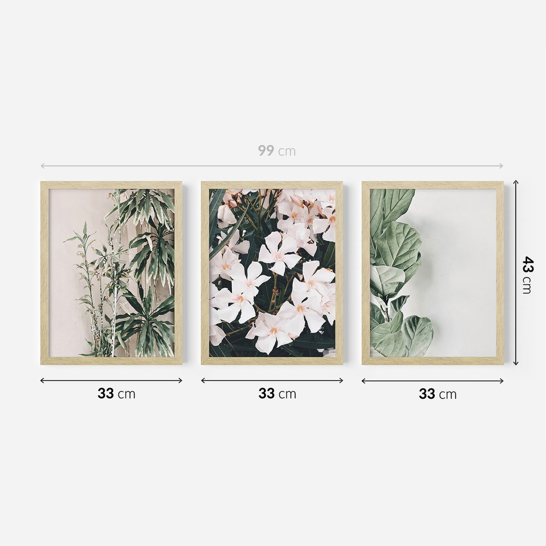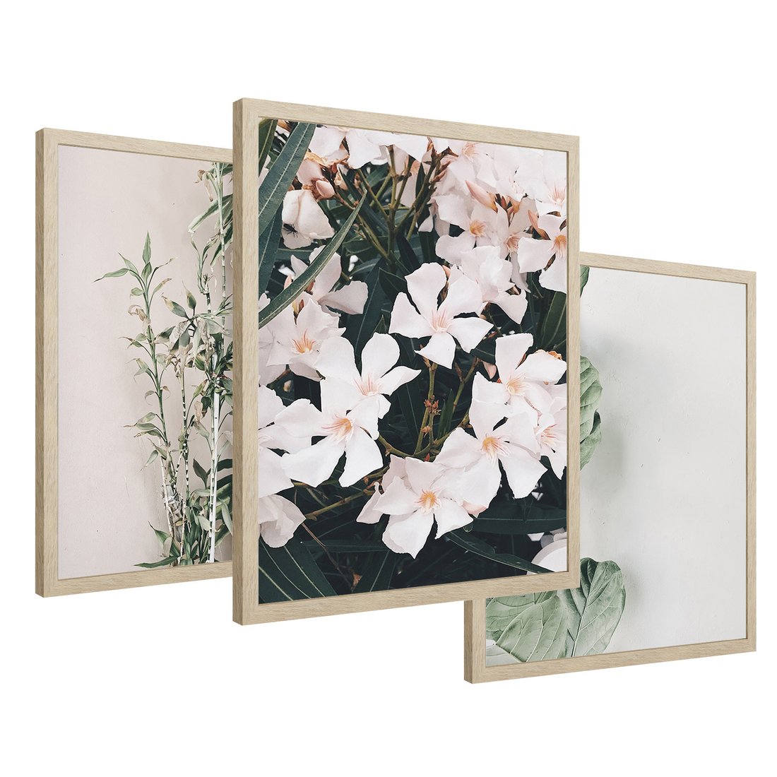 Zestaw obrazy w ramie 30x40 galeria - Liście, kwiaty, nowoczesny, styl - rama drewno