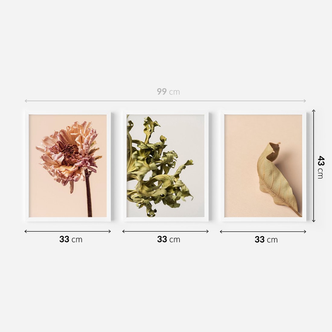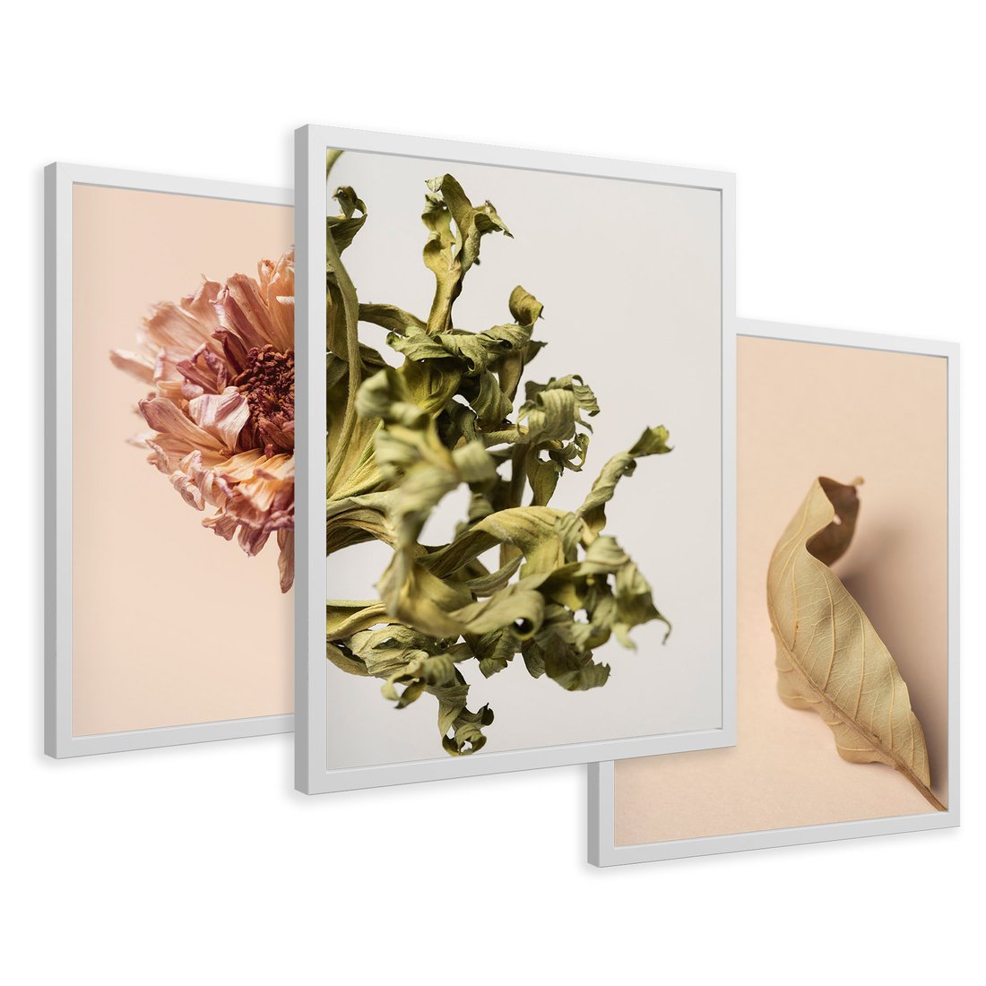 Zestaw obrazy w ramie 30x40 galeria - Minimalistyczne, suszone, kwiaty, boho - rama biała