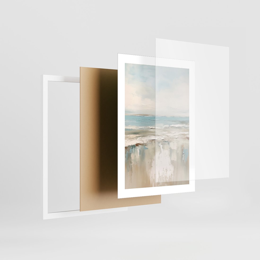 Zestaw obrazy w ramie 30x40 galeria - morze, niebo, akwarela, plaża - rama biała