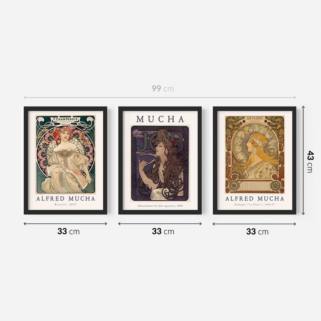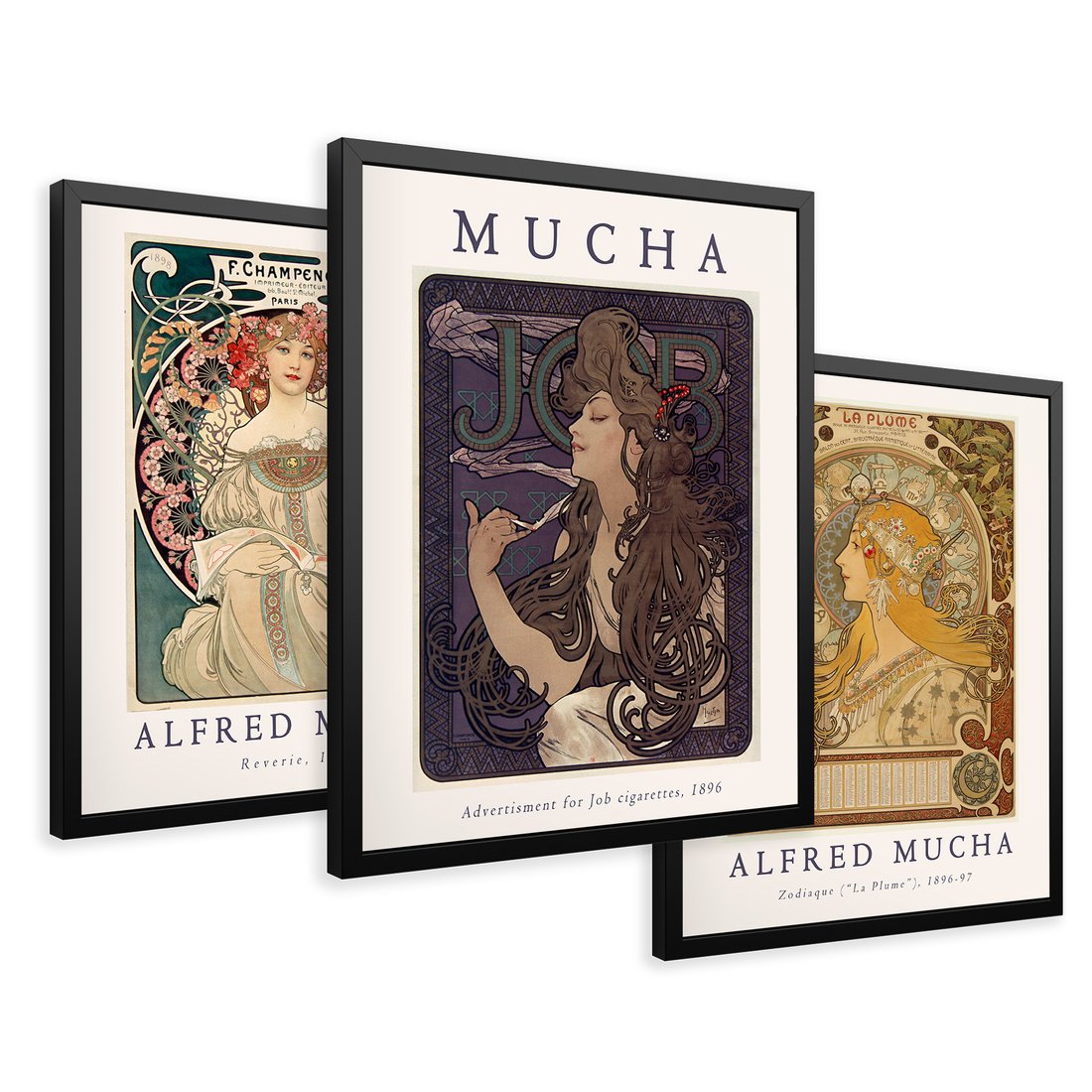 Zestaw obrazy w ramie 30x40 galeria - Mucha, secesja, plakat, kobieta - rama czarna