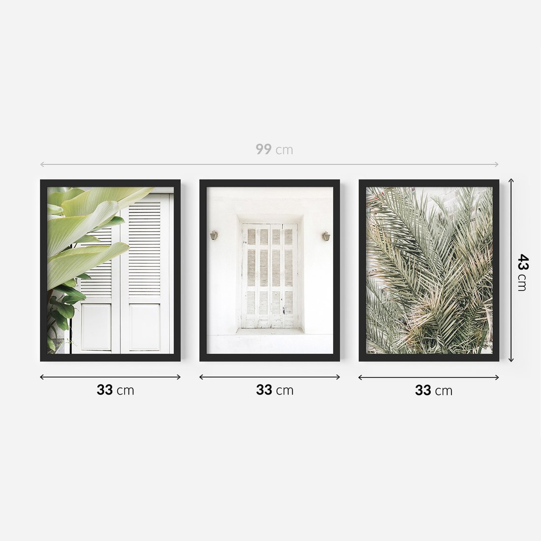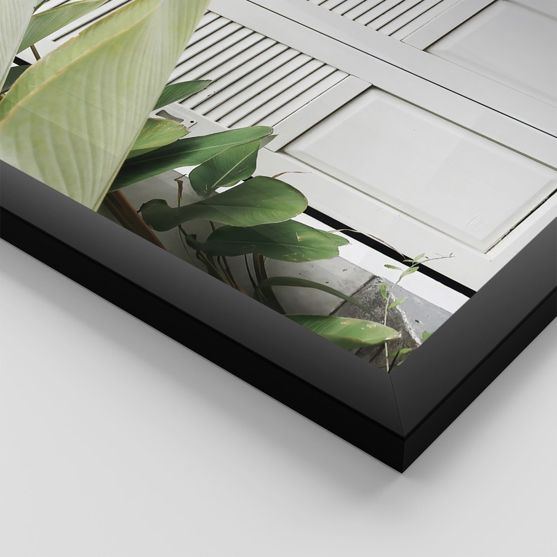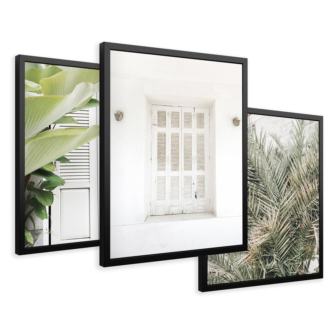 Zestaw obrazy w ramie 30x40 galeria - Okiennica, liście, biały - rama czarna