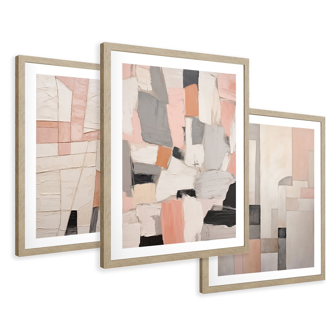 Zestaw obrazy w ramie 30x40 galeria - pastelowa, abstrakcja, olejny - rama drewno