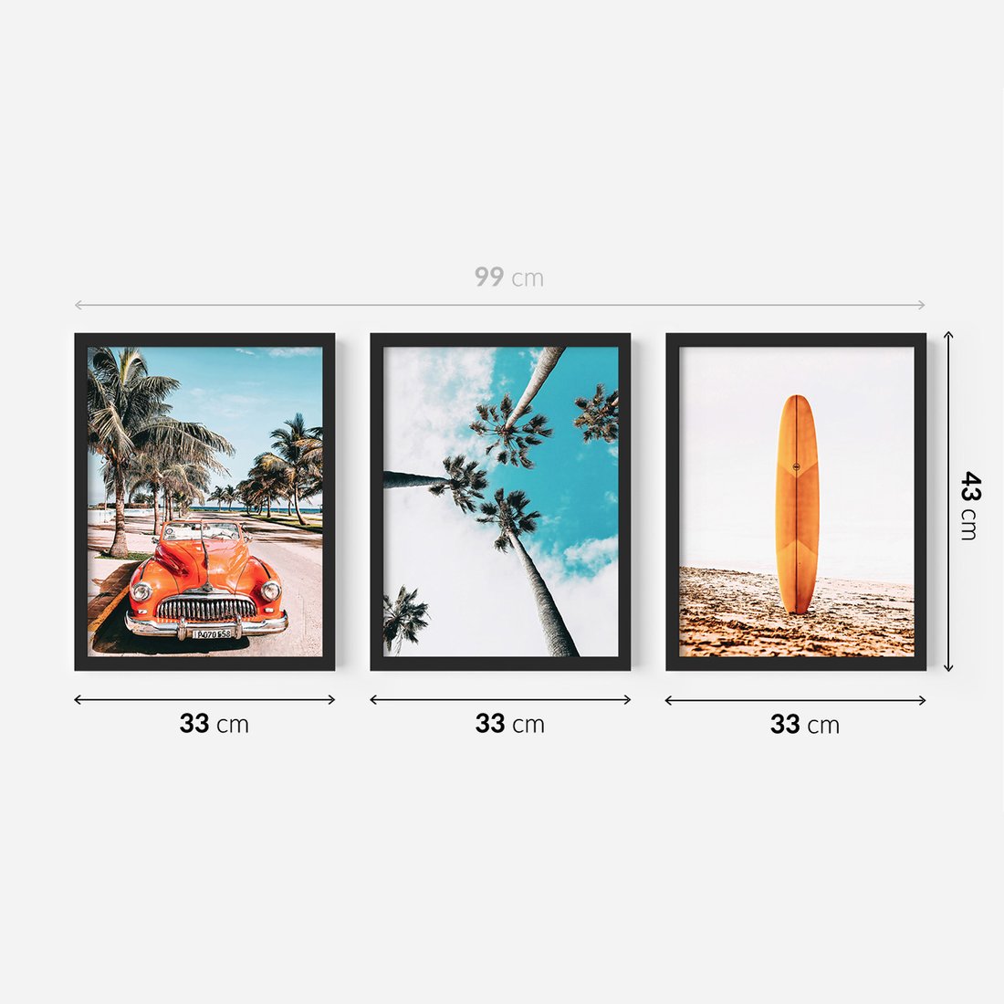 Zestaw obrazy w ramie 30x40 galeria - Plaża, surfing, garbus, morze, plaża - rama czarna