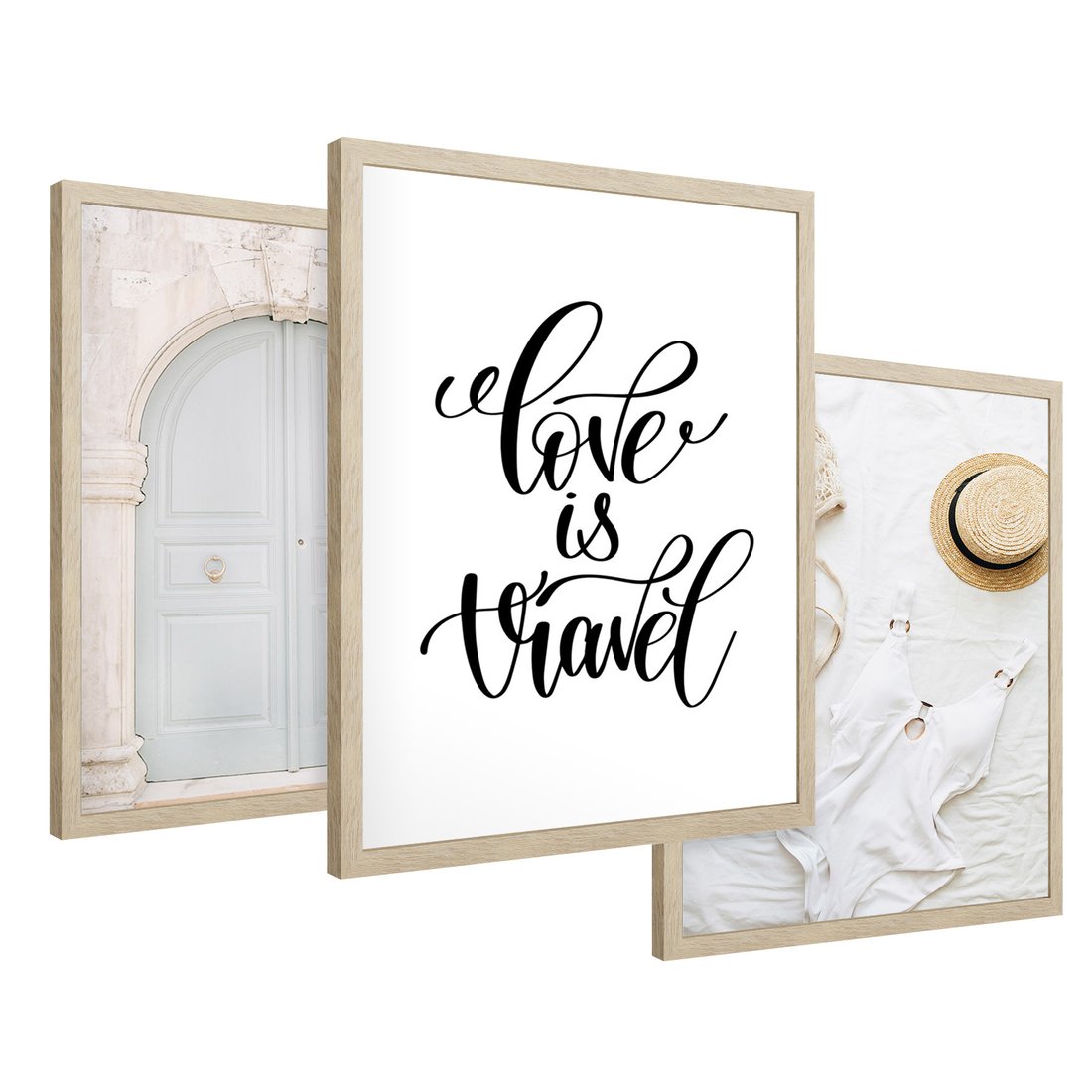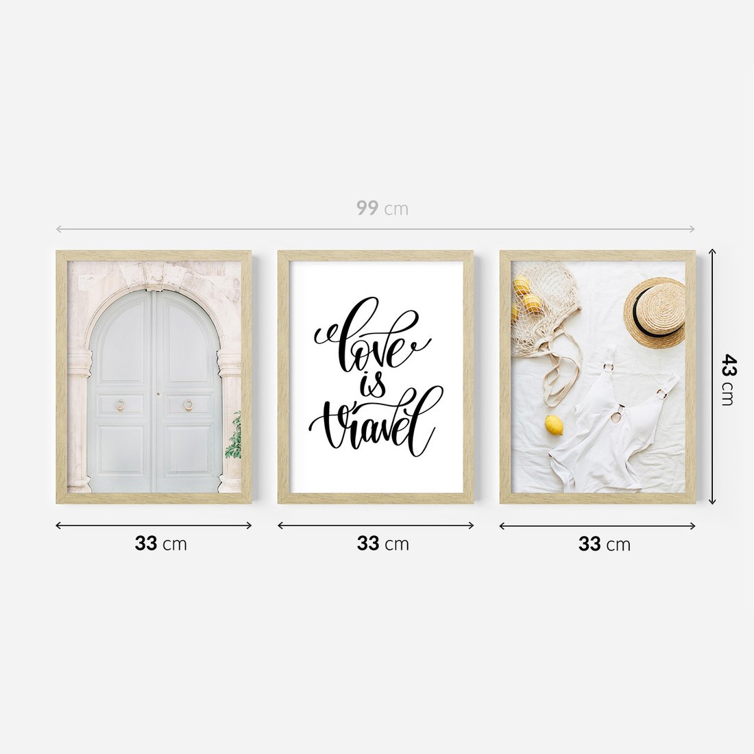 Zestaw obrazy w ramie 30x40 galeria - Podróże, wakacje, typografia, Włochy - rama drewno
