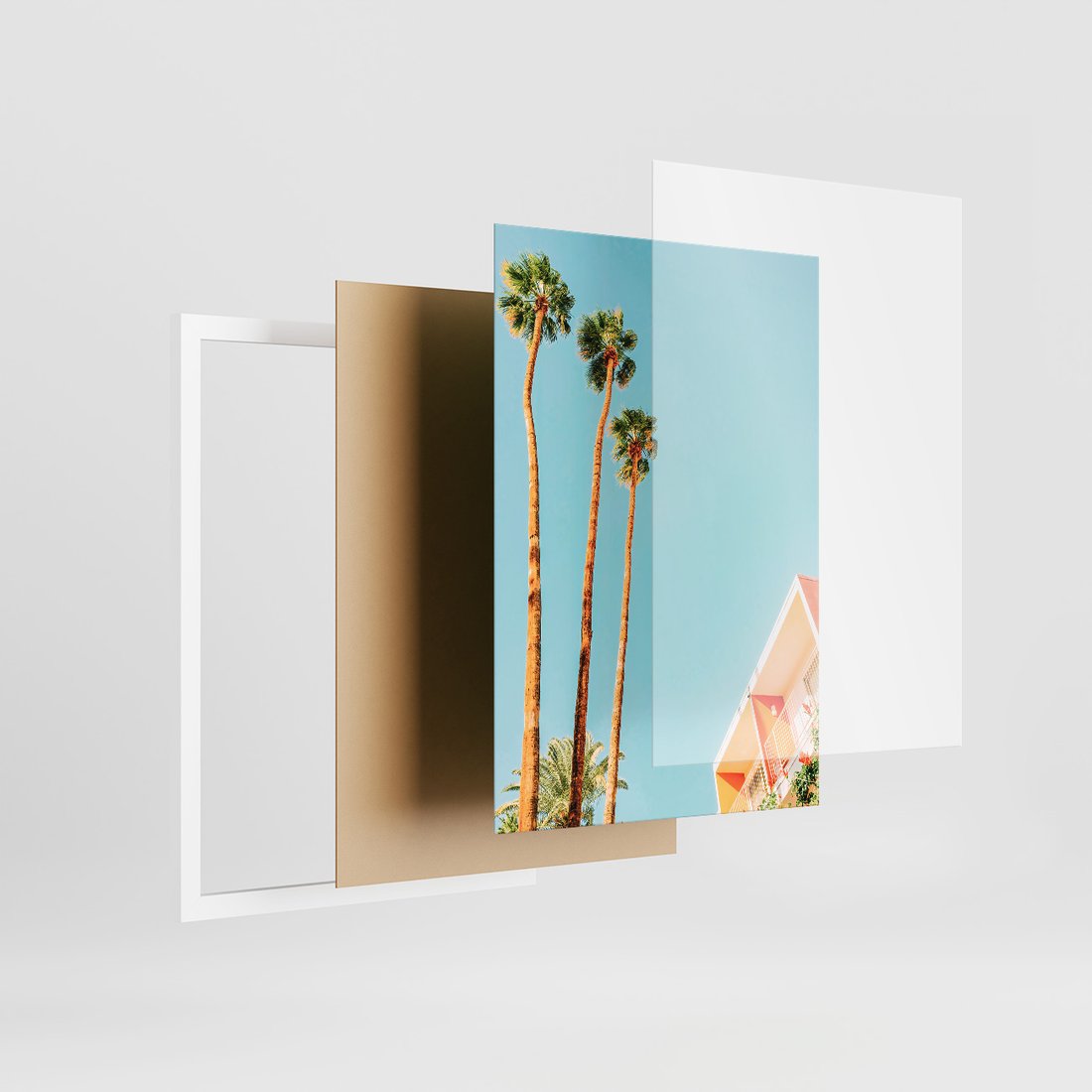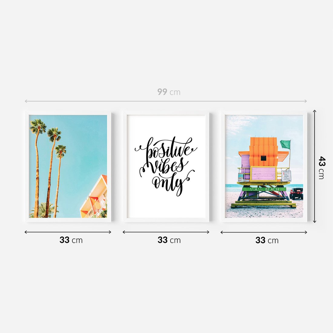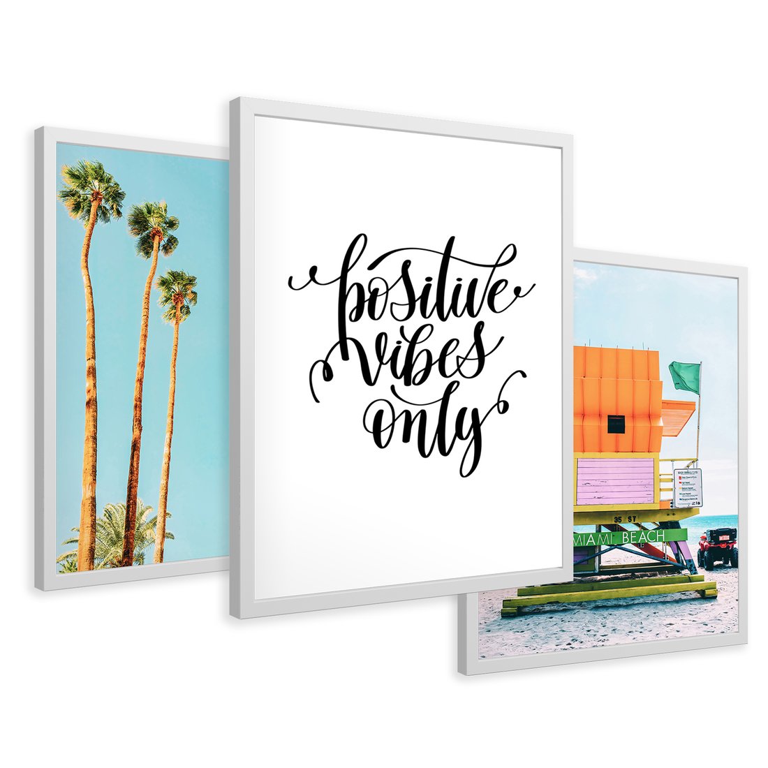 Zestaw obrazy w ramie 30x40 galeria - Pozytywny, cytat, plaża, palmy, wakacje - rama biała