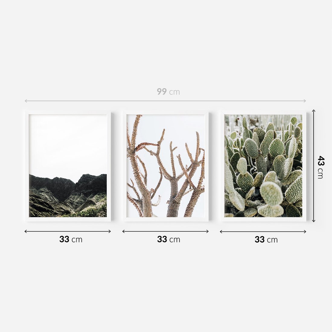 Zestaw obrazy w ramie 30x40 galeria - Pustynia, kaktusy, zieleń, boho - rama biała