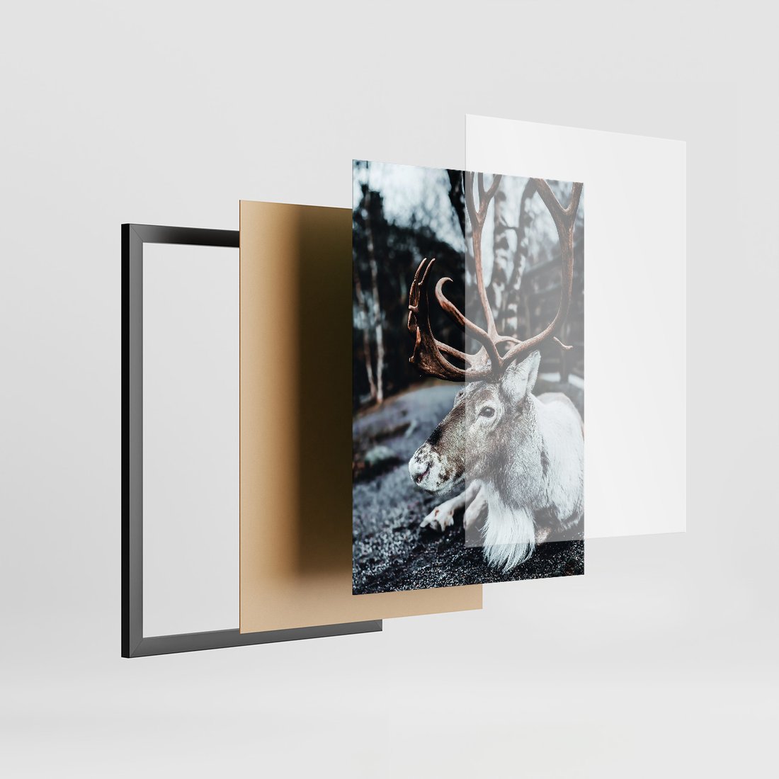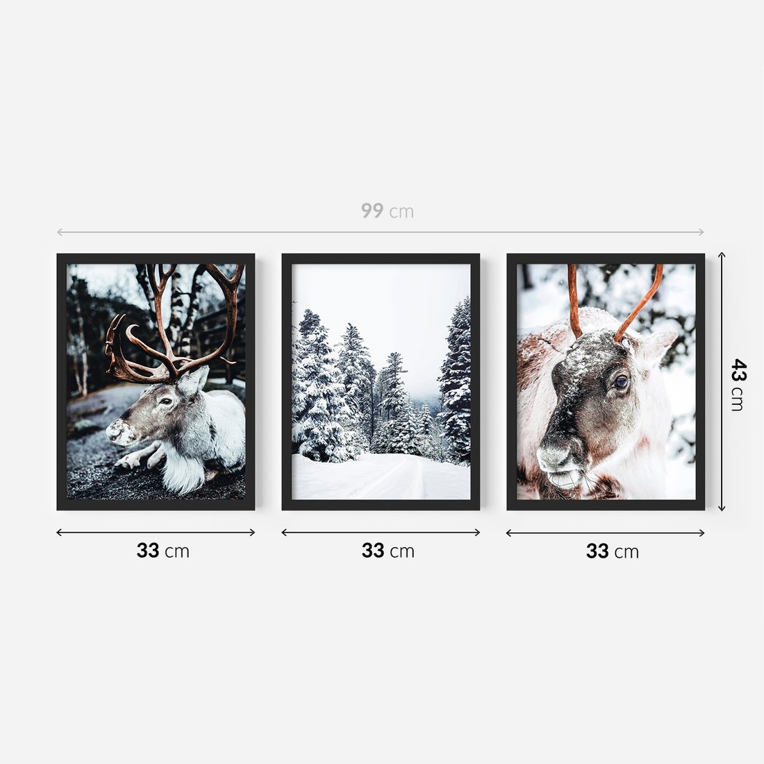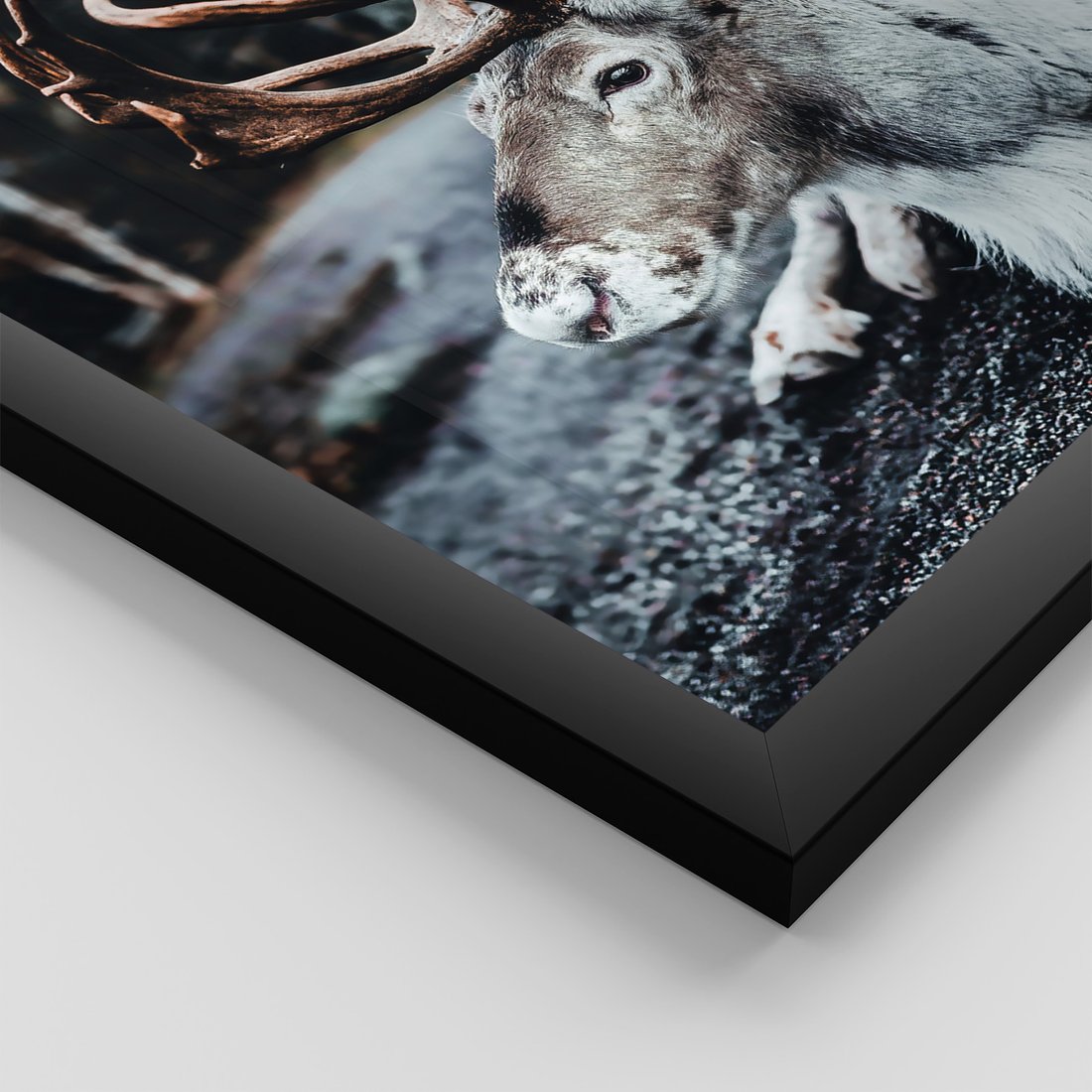 Zestaw obrazy w ramie 30x40 galeria - Renifer, zima, las, pejzaż, natura - rama czarna