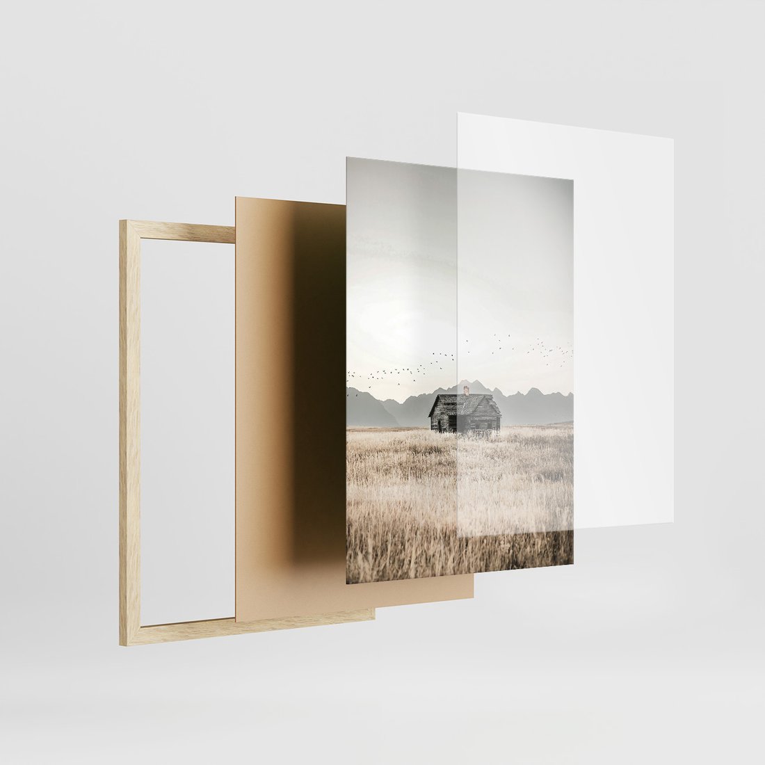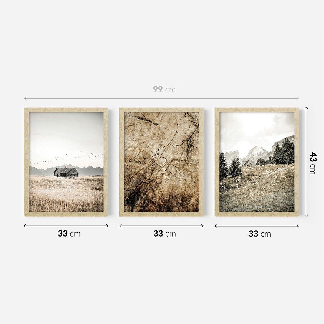 Zestaw obrazy w ramie 30x40 galeria - Rustykalne, pejzaże, góry, chatka - rama drewno