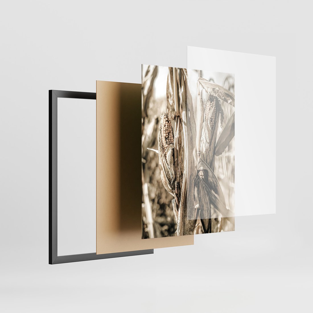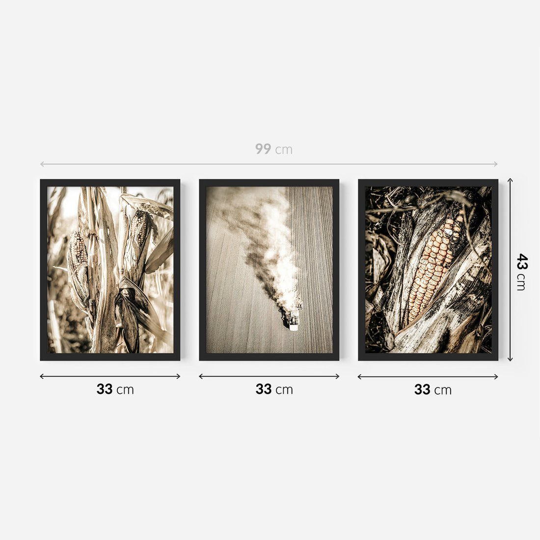 Zestaw obrazy w ramie 30x40 galeria - Sepia, kukurydza, pole - rama czarna