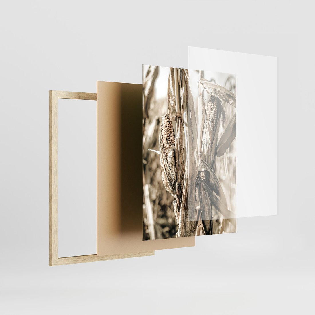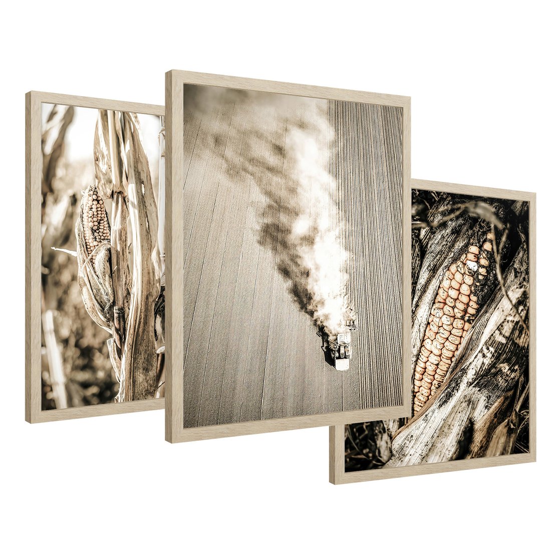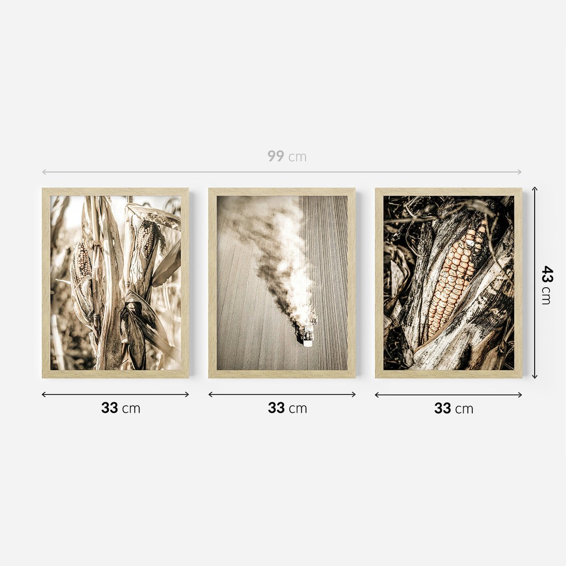 Zestaw obrazy w ramie 30x40 galeria - Sepia, kukurydza, pole - rama drewno