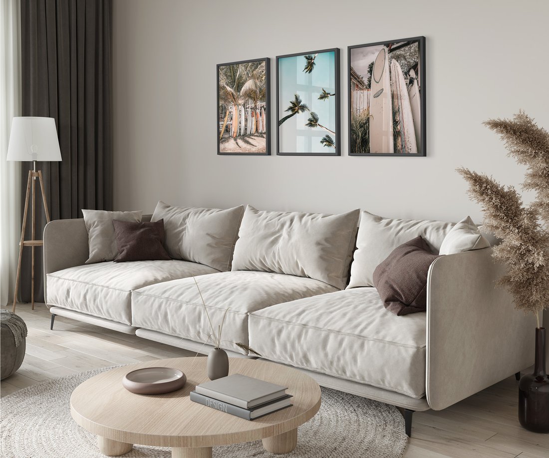 Dodaj elegancji i stylu swojemu wnętrzu dzięki zestawowi starannie wykonanych obrazów w ramie. Ten unikalny komplet to idealne połączenie nowoczesnego designu i ponadczasowego piękna, które doskonale wkomponuje się w każde pomieszczenie. W skład kompletu wchodzą trzy odrębne obrazy, które można zawiesić obok siebie lub rozmieszczać w różnych miejscach, tworząc spersonalizowaną dekorację.