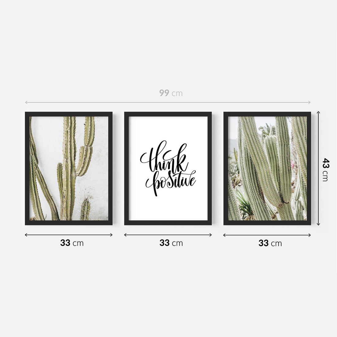 Zestaw obrazy w ramie 30x40 galeria - Think, positive, kaktusy, boho - rama czarna