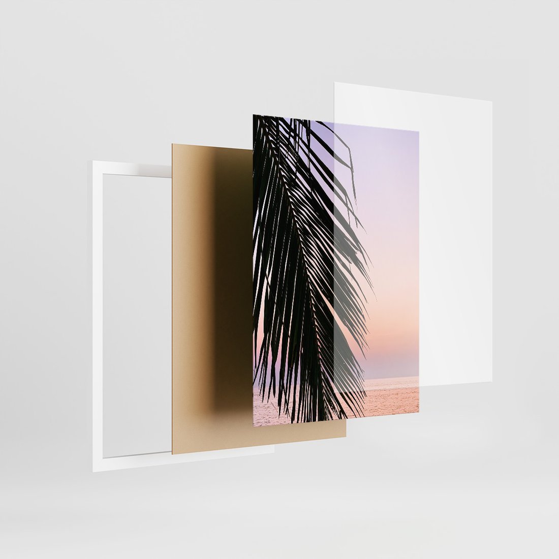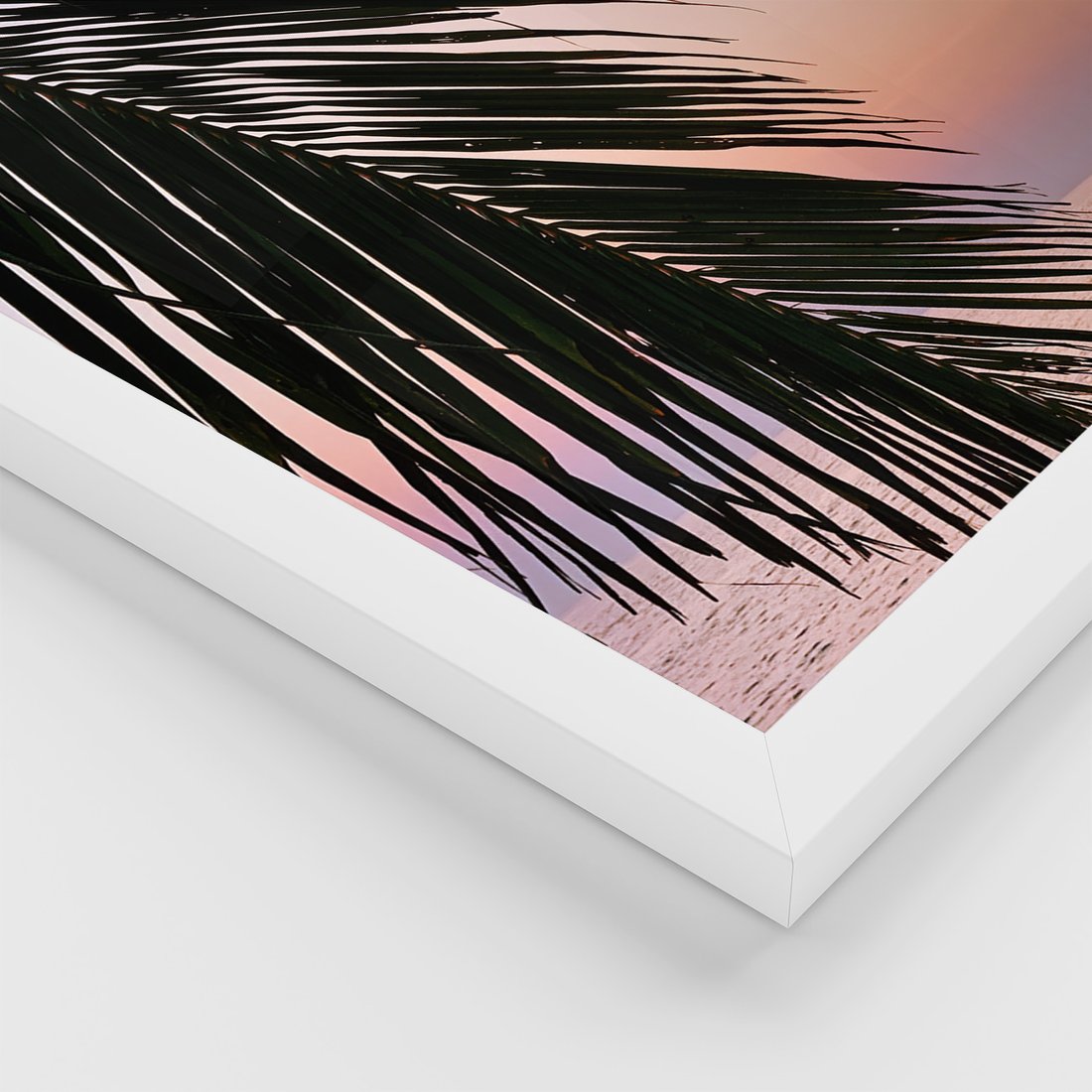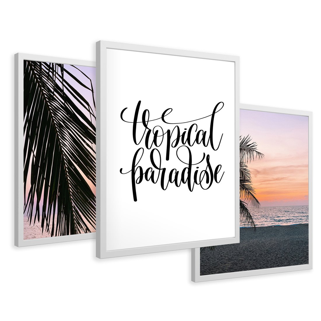 Zestaw obrazy w ramie 30x40 galeria - Tropikalne, palmy, zachód, słońca - rama biała