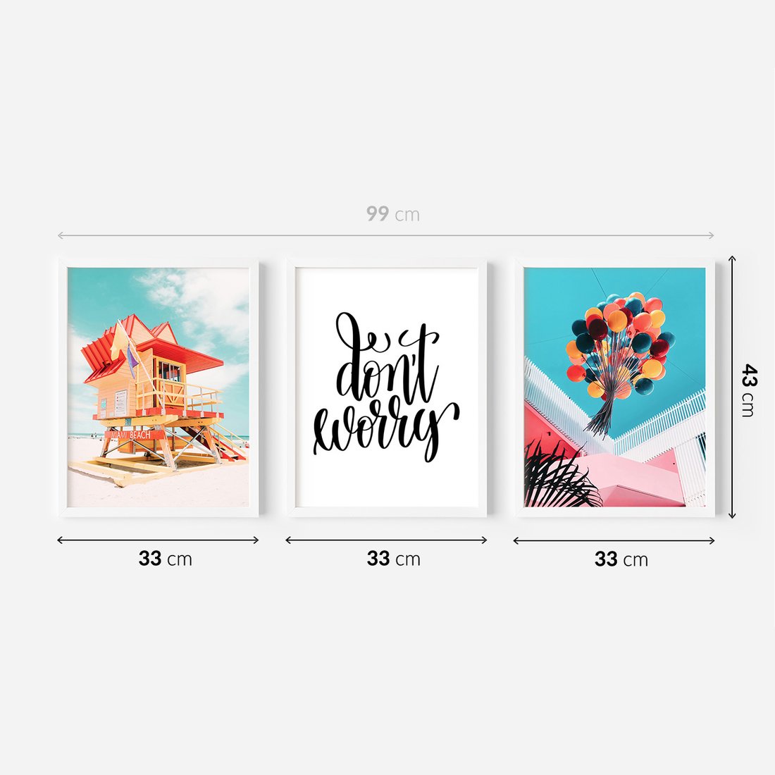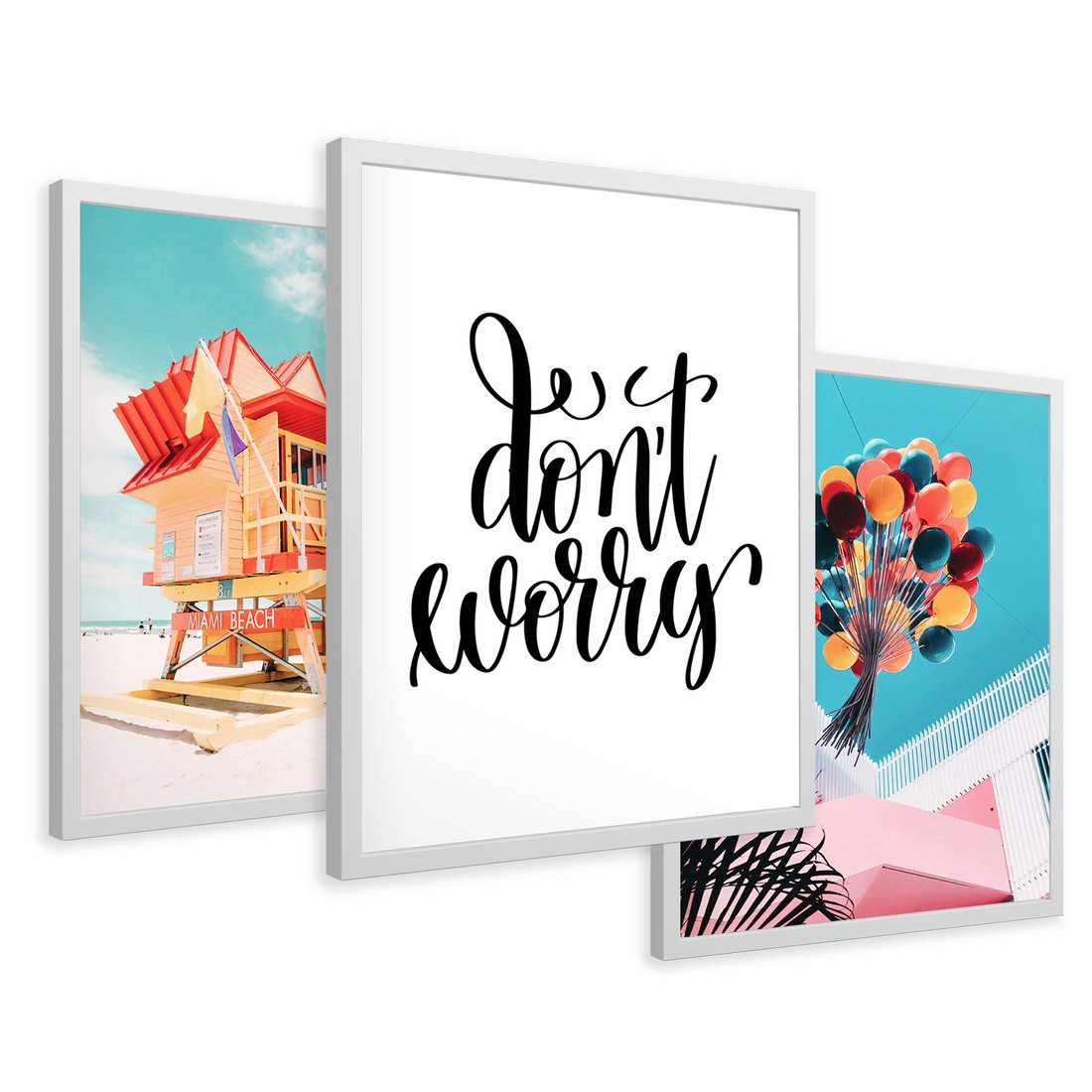 Zestaw obrazy w ramie 30x40 galeria - Wesoły, cytat, kolorowe, balony - rama biała