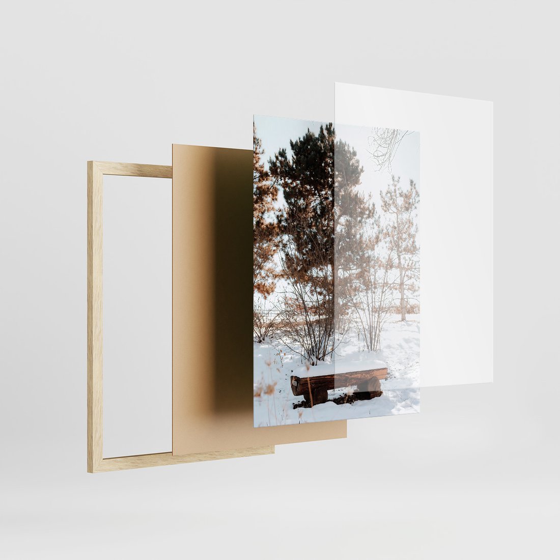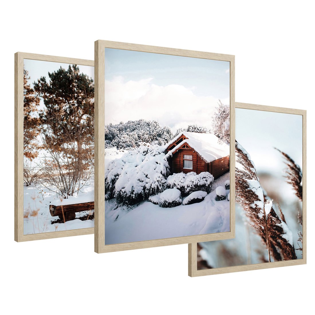 Zestaw obrazy w ramie 30x40 galeria - Zachód, słońca, zima, chatka, retro, boho - rama drewno