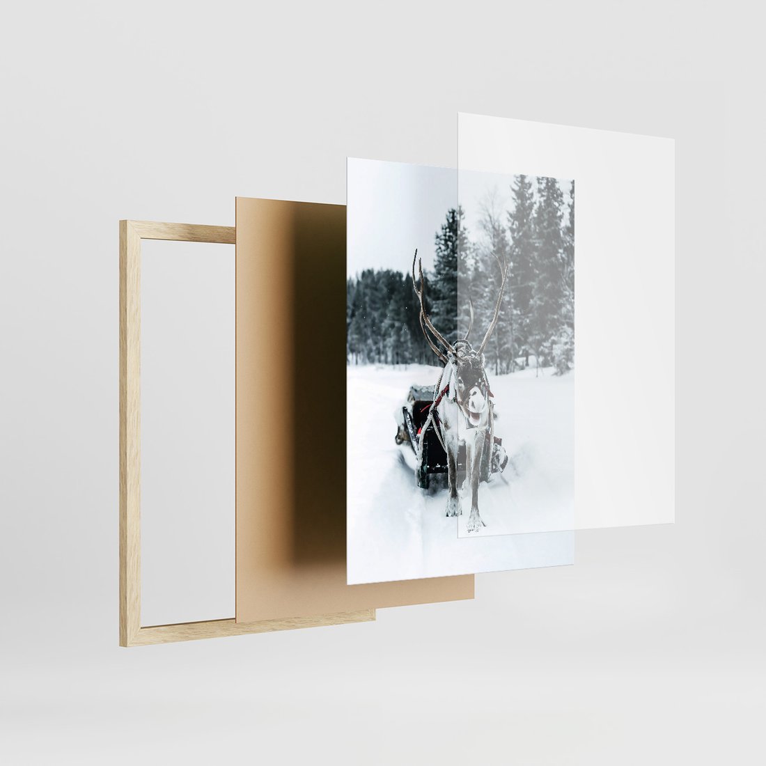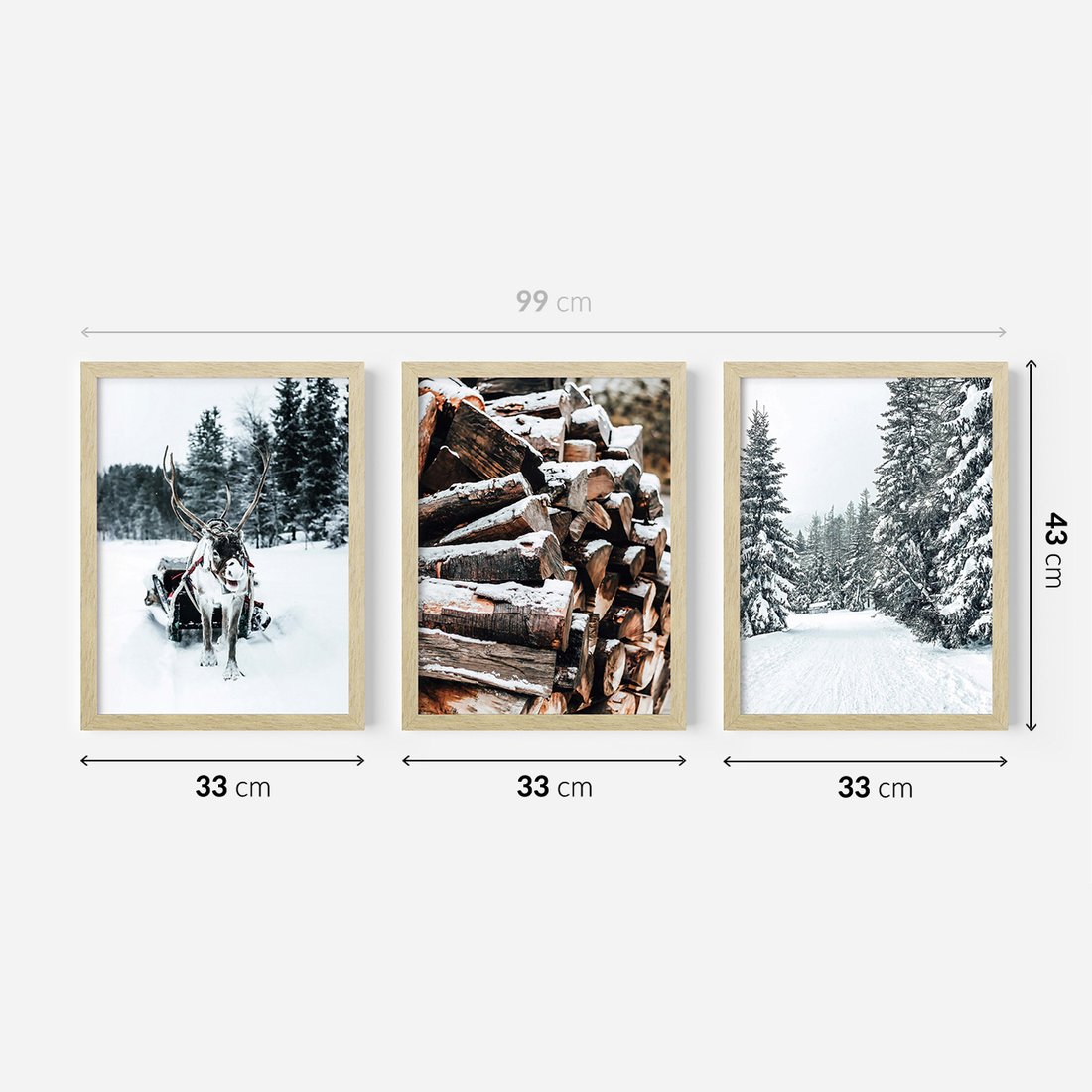 Zestaw obrazy w ramie 30x40 galeria - Zima, las, renifer, krajobraz - rama drewno