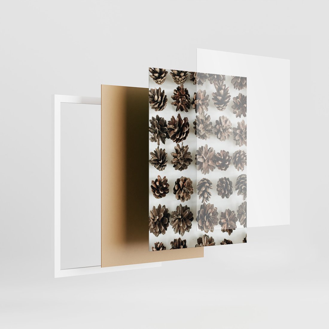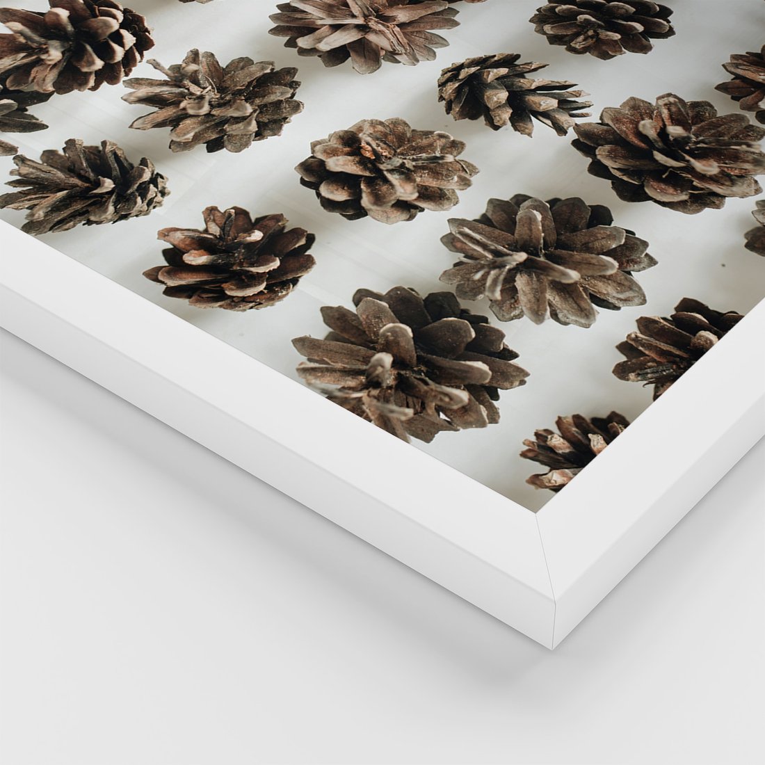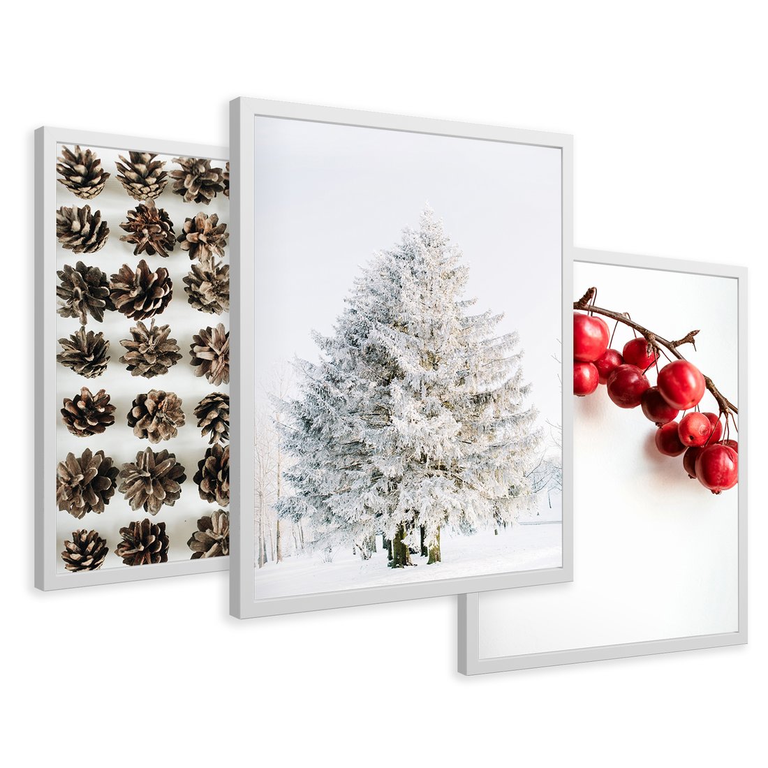 Zestaw obrazy w ramie 30x40 galeria - Zima, szyszki, śnieg - rama biała