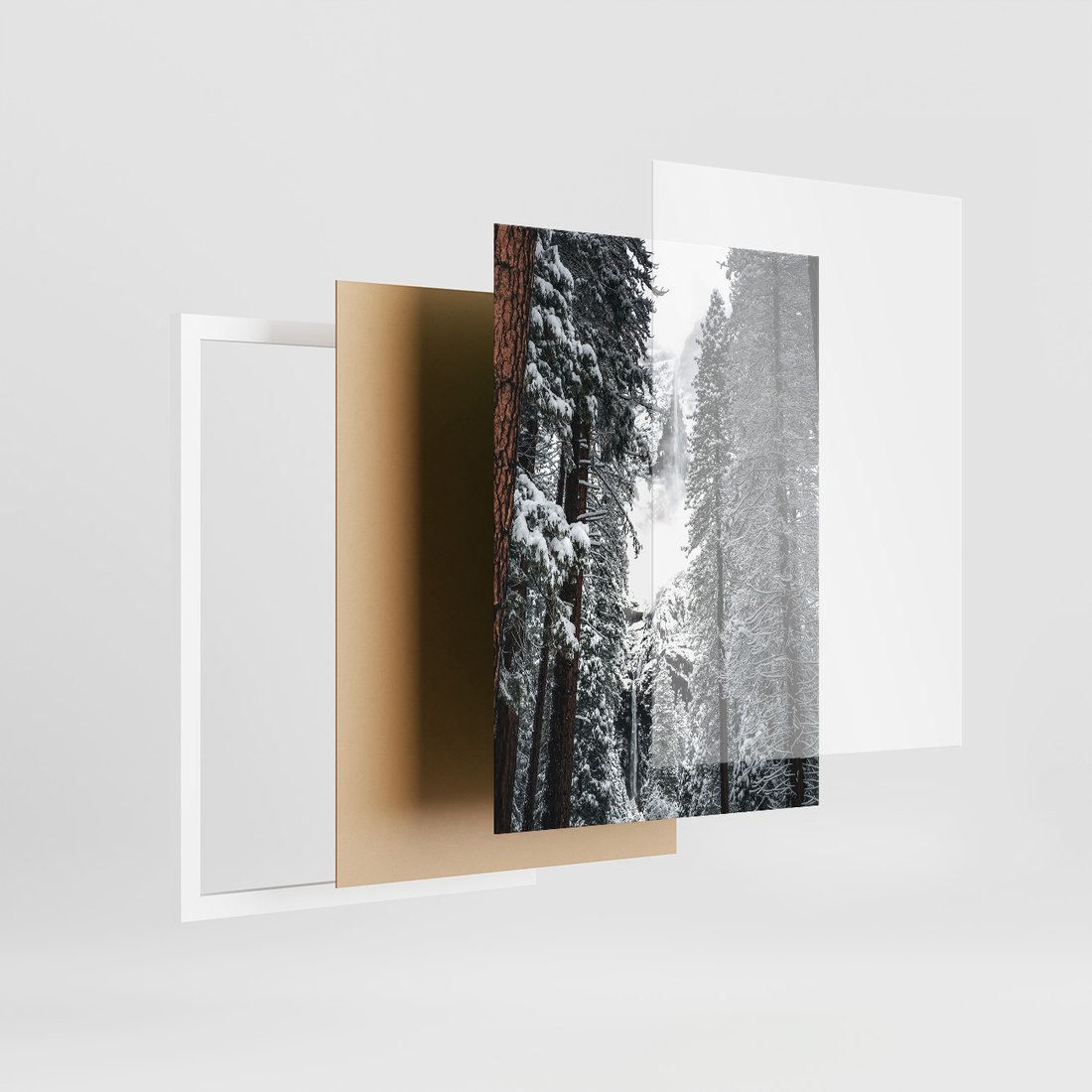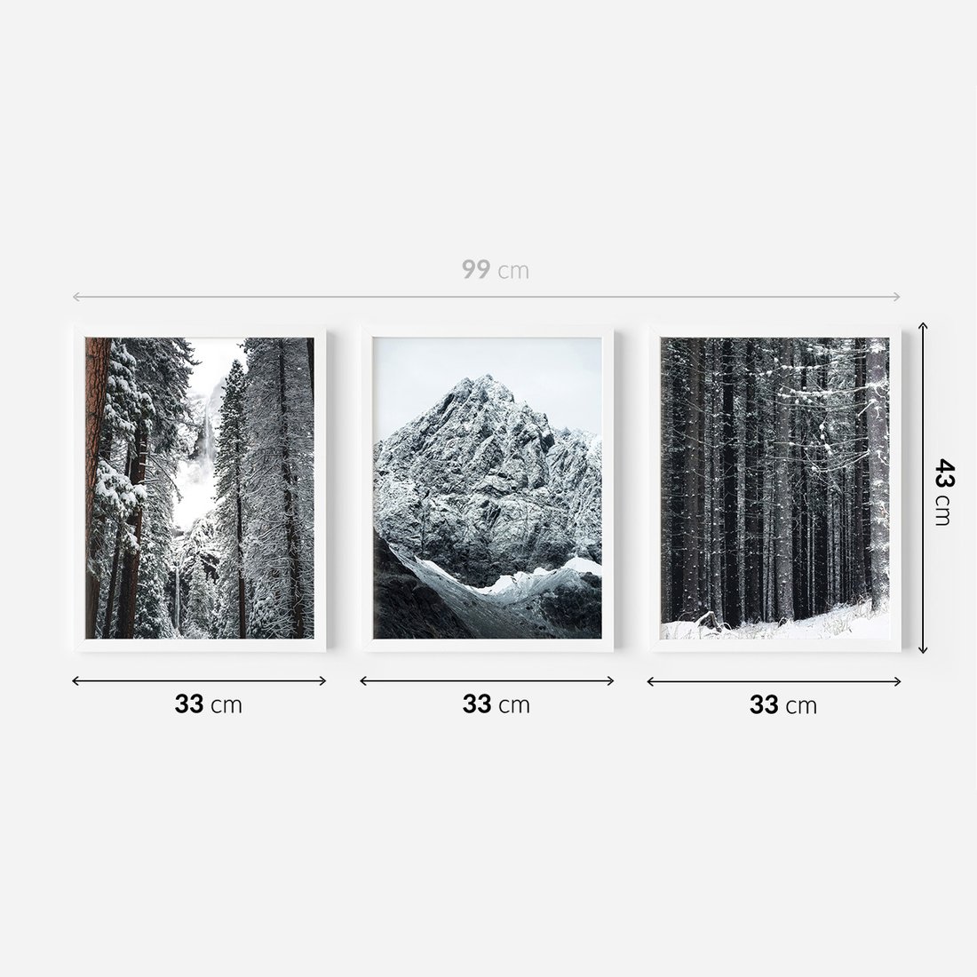 Zestaw obrazy w ramie 30x40 galeria - Zima, w, górach, las, widok - rama biała