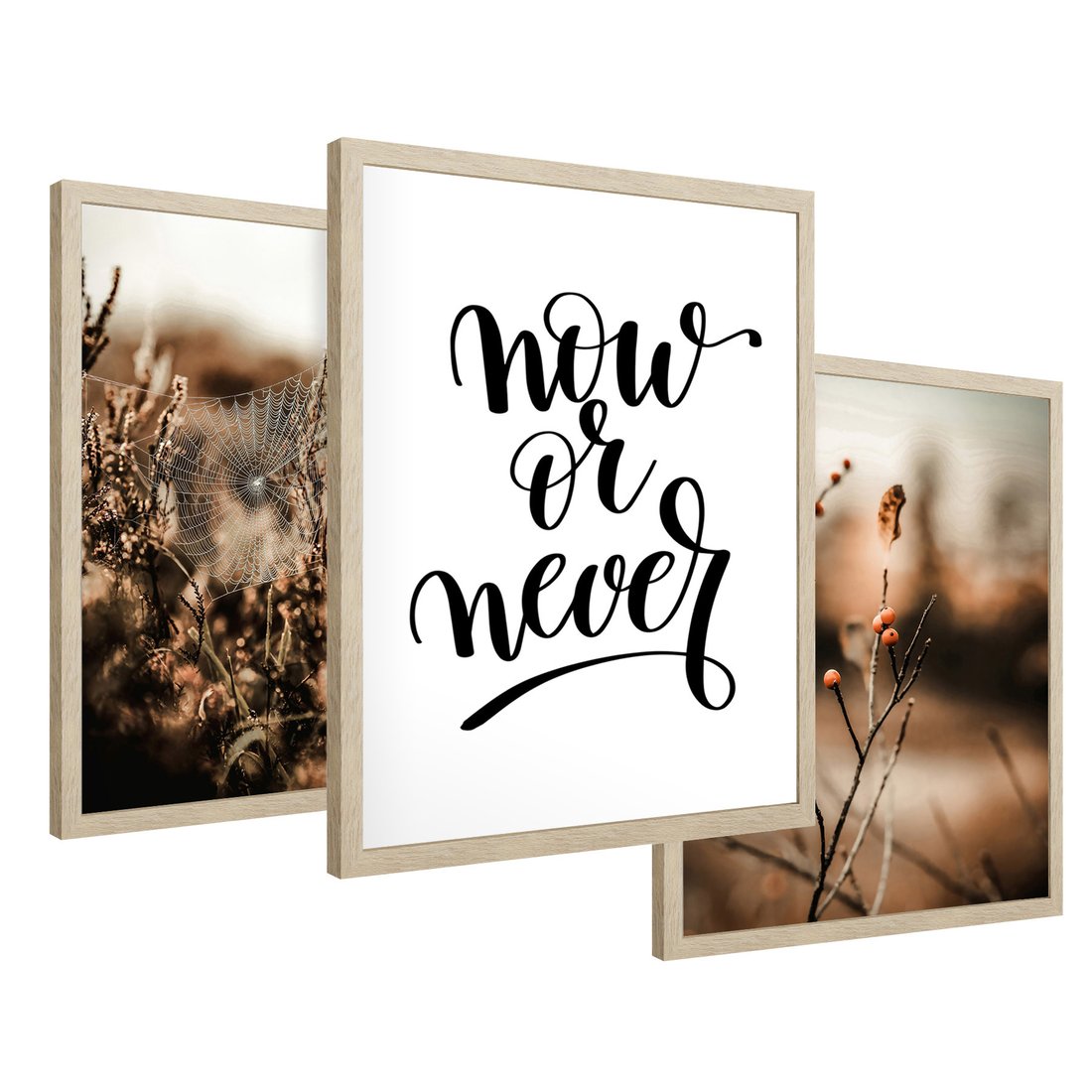 Zestaw obrazy w ramie 40x50 galeria - Boho, cytat, motywacja, trawy - rama drewno