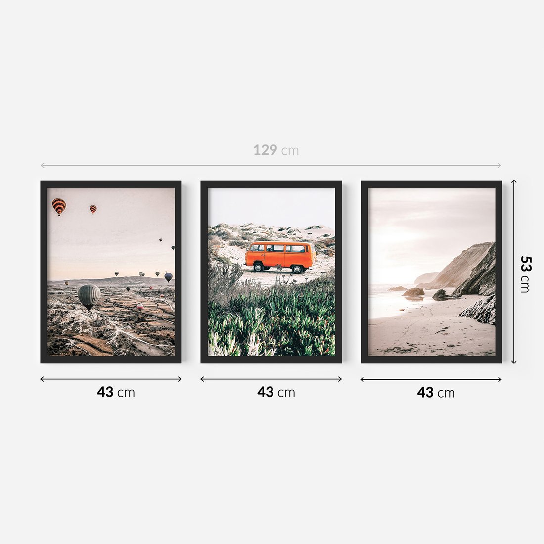 Zestaw obrazy w ramie 40x50 galeria - Boho, wan, pustynia, balony - rama czarna