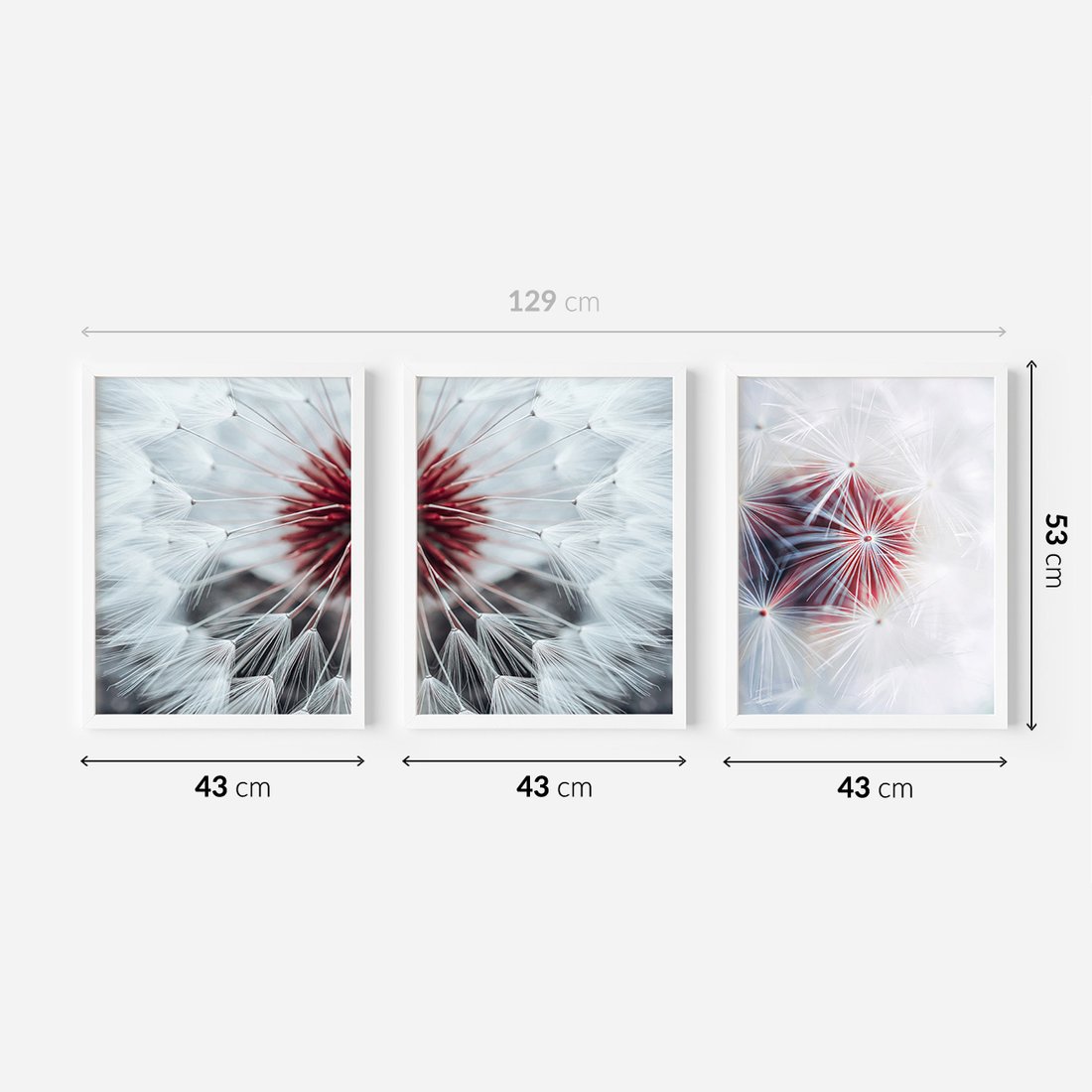 Zestaw obrazy w ramie 40x50 galeria - Dmuchawiec, nowoczesny, minimalizm - rama biała