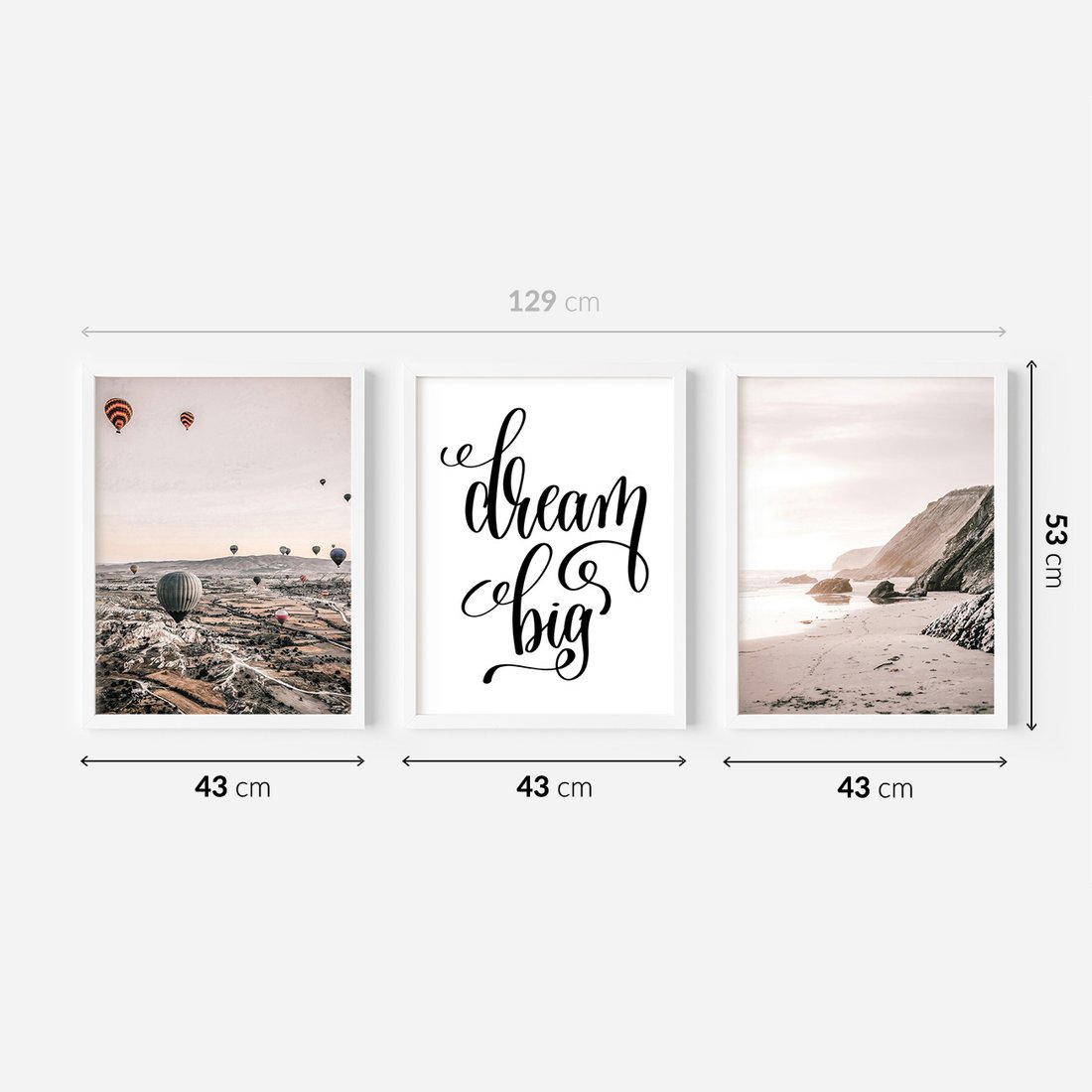Zestaw obrazy w ramie 40x50 galeria - Dream, big, cytat, napis, balony - rama biała