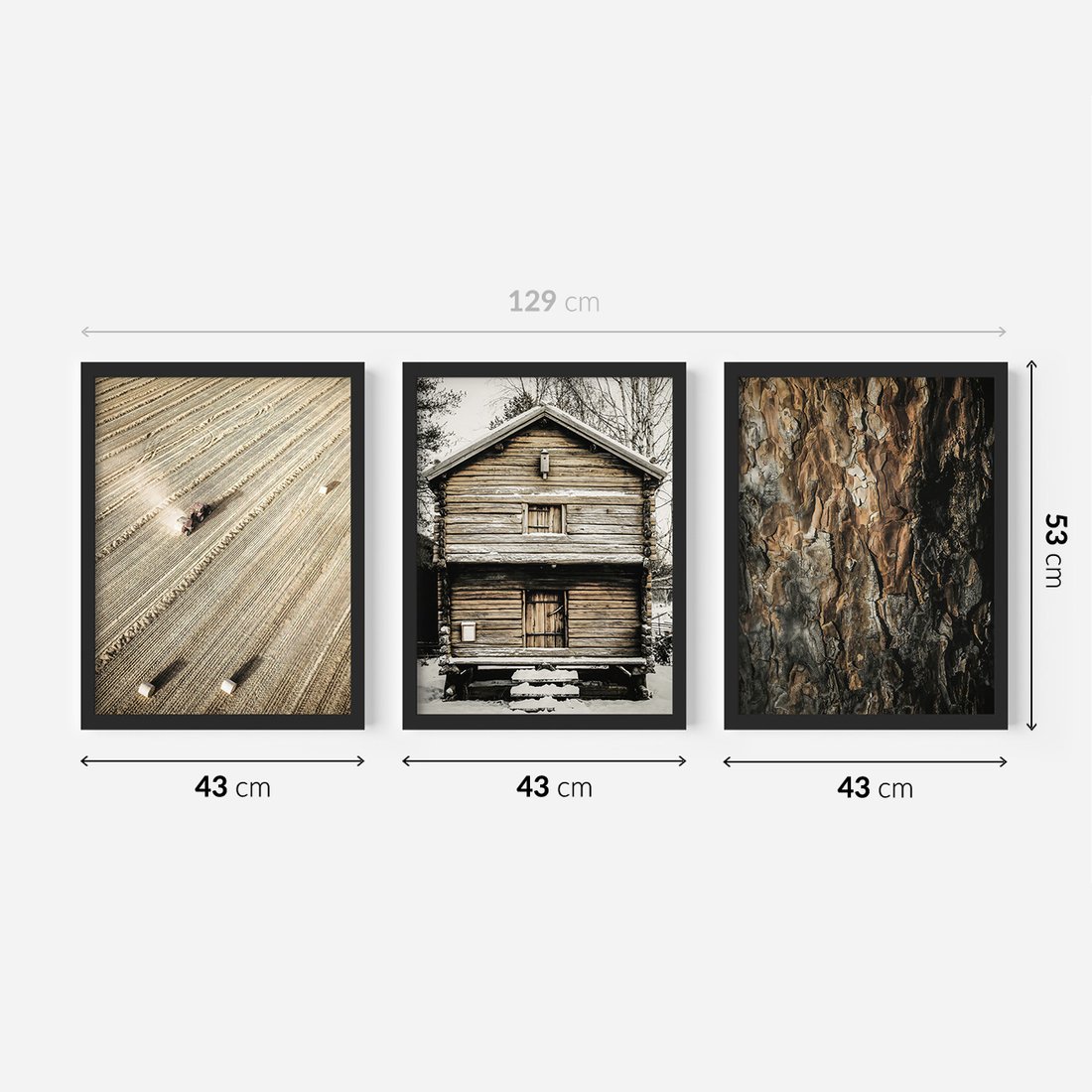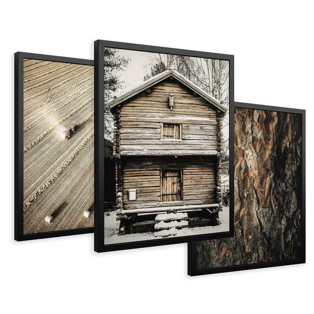Zestaw obrazy w ramie 40x50 galeria - Górska, chatka, drewno, przytulnie - rama czarna