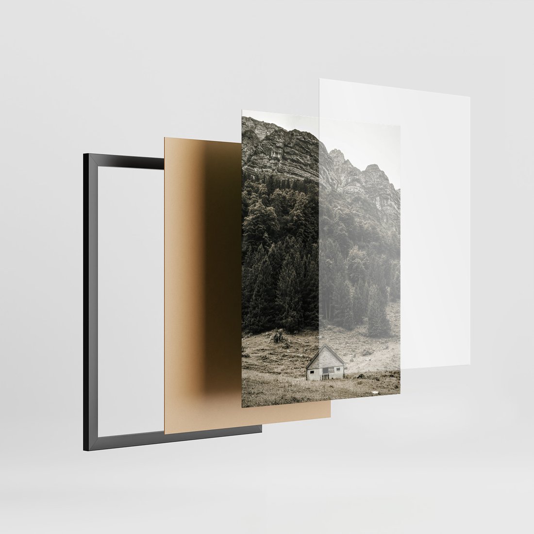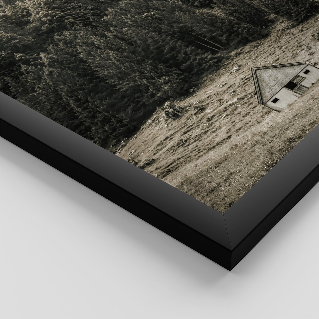 Zestaw obrazy w ramie 40x50 galeria - Górskie, domki, łąki, sepia - rama czarna