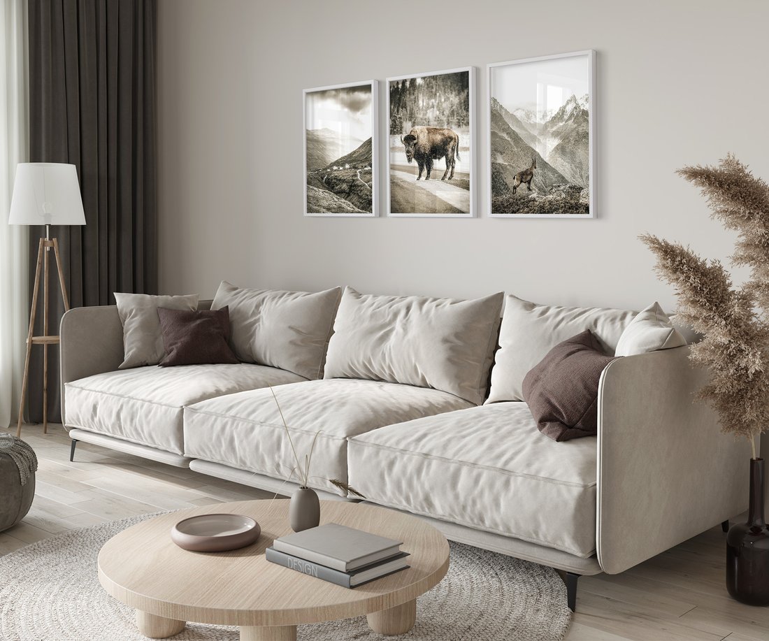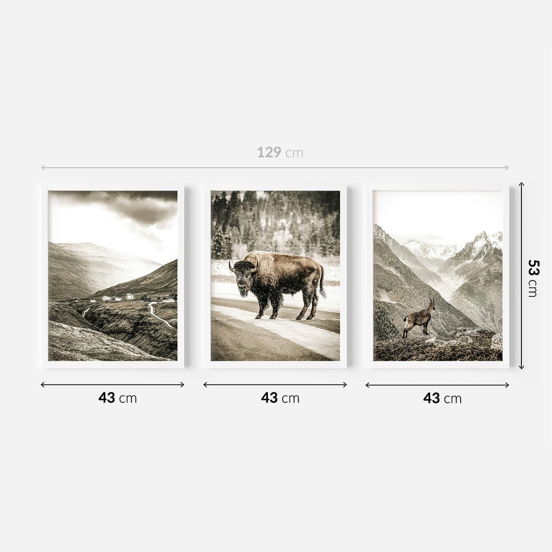 Zestaw obrazy w ramie 40x50 galeria - Góry, bizon, kozica - rama biała