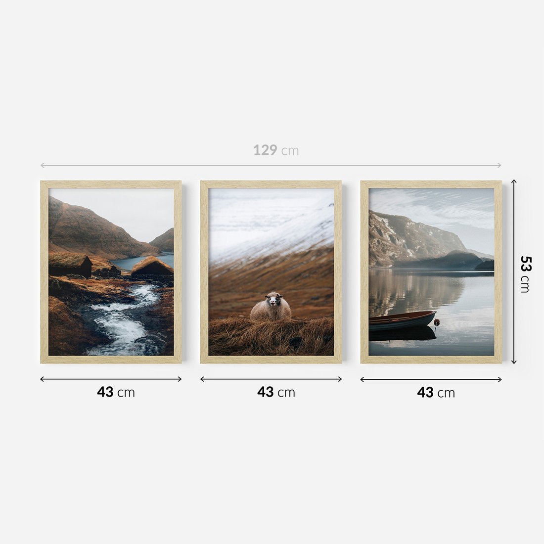 Zestaw obrazy w ramie 40x50 galeria - Góry, skandynawski, boho - rama drewno