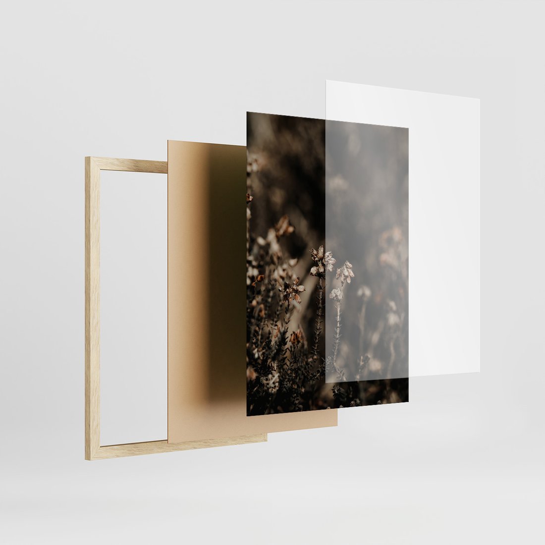 Zestaw obrazy w ramie 40x50 galeria - Jesień, łąką, boho, galązki - rama drewno