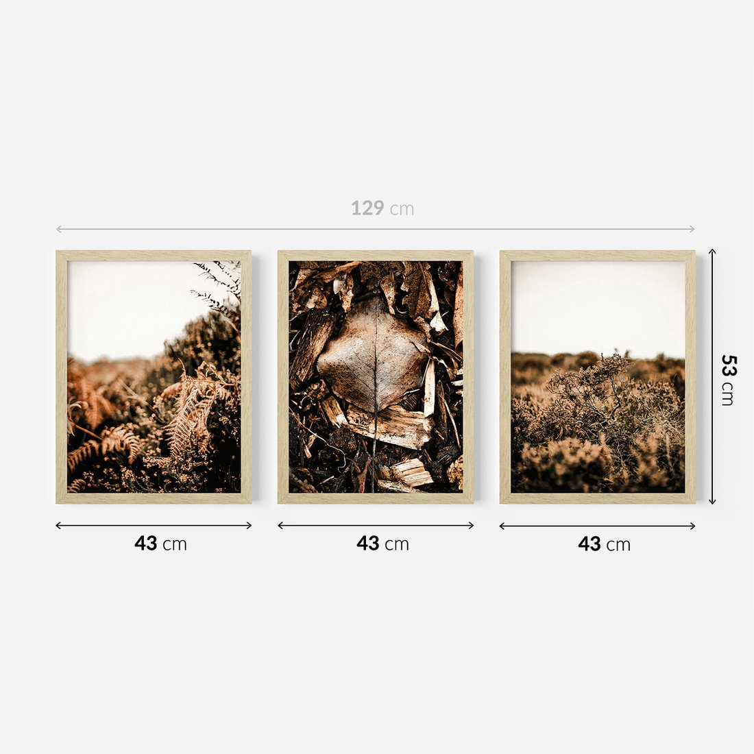 Zestaw obrazy w ramie 40x50 galeria - Jesienna, łąka, liście, boho - rama drewno