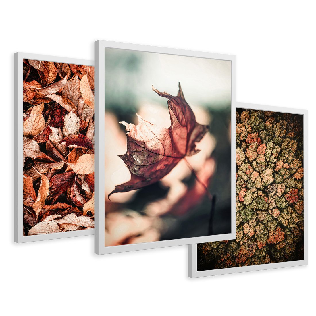Zestaw obrazy w ramie 40x50 galeria - Jesienny, las, liście - rama biała