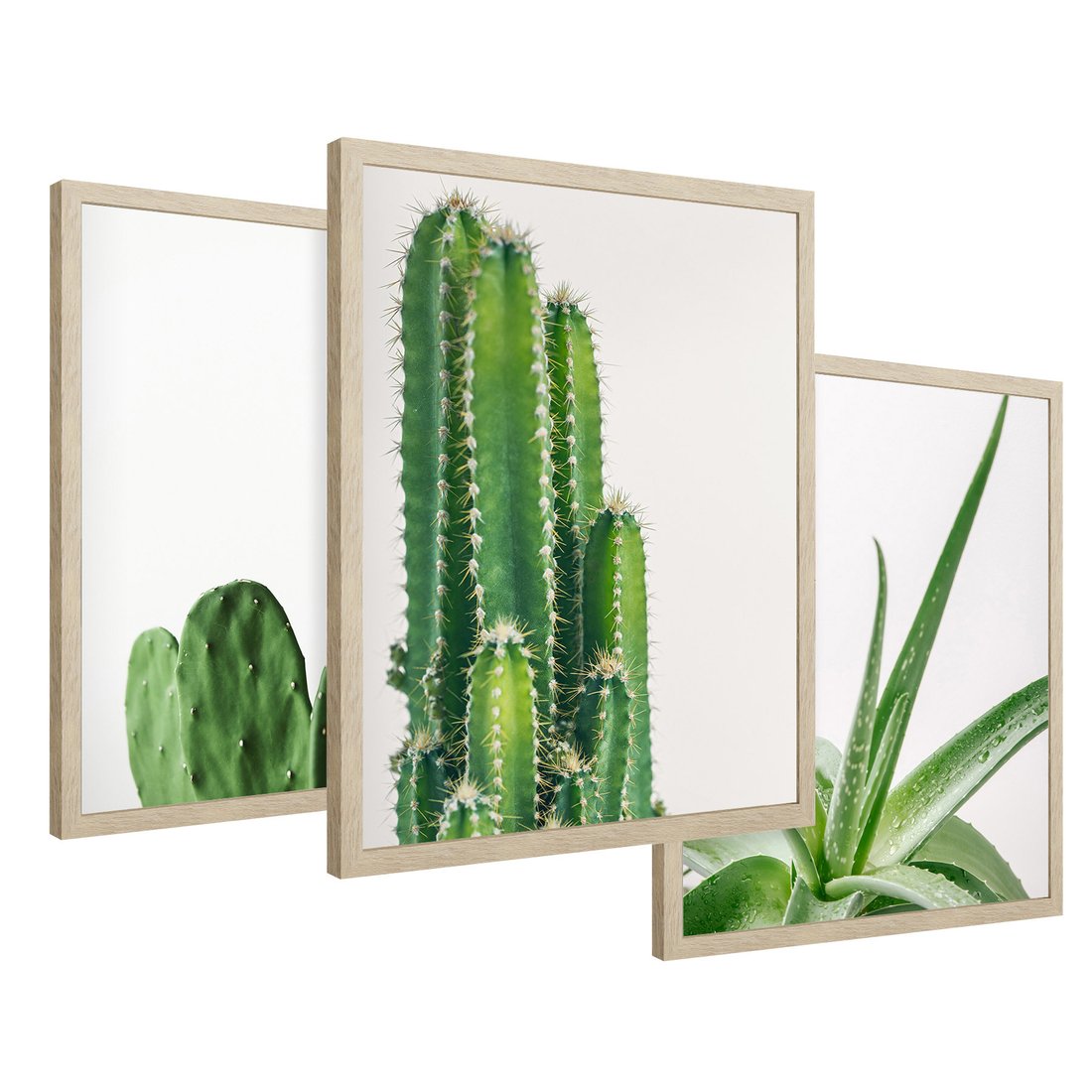 Zestaw obrazy w ramie 40x50 galeria - Kaktusy, minimalizm, boho, nowoczesny - rama drewno