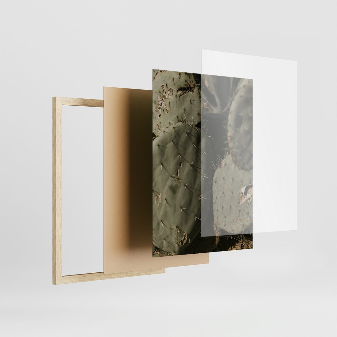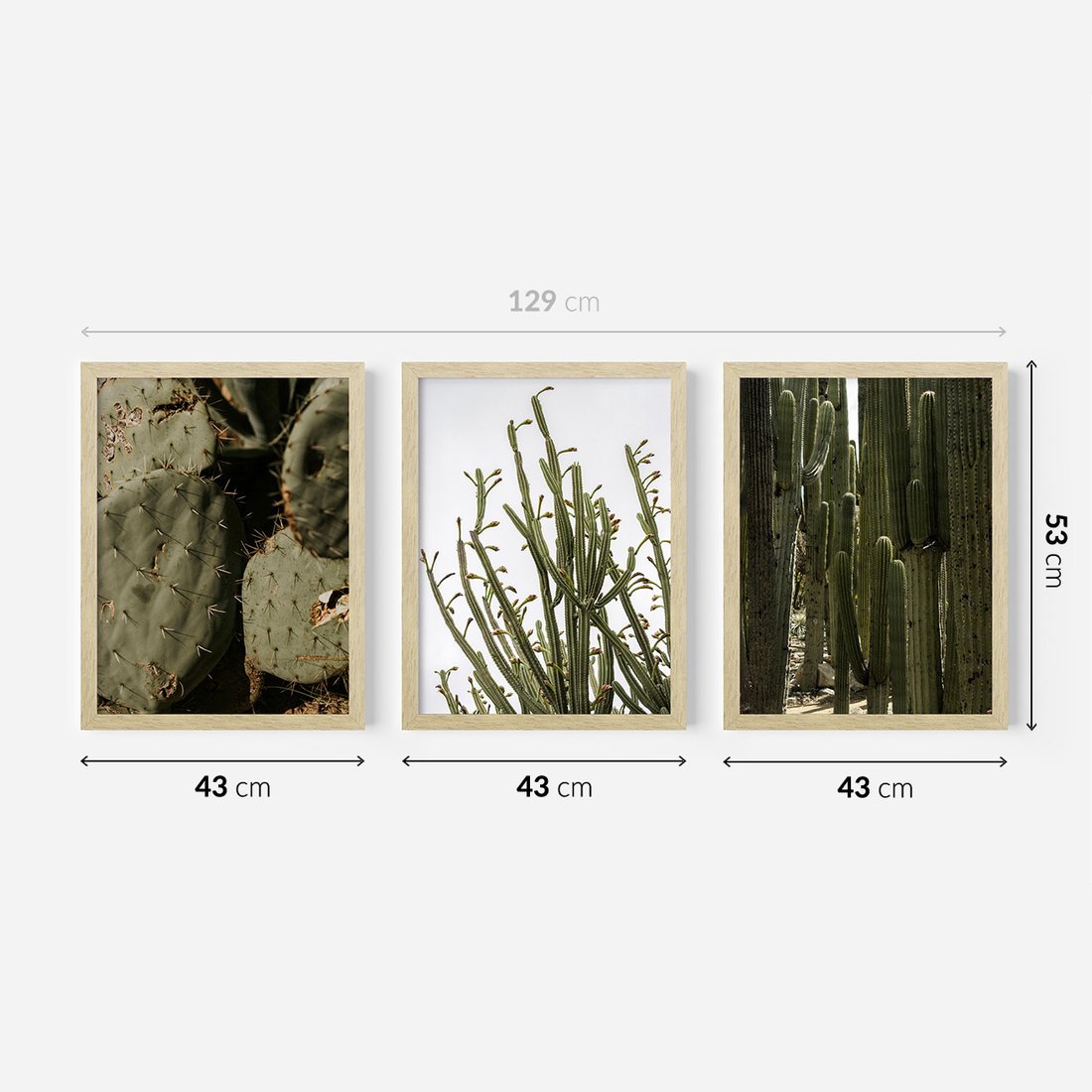 Zestaw obrazy w ramie 40x50 galeria - Kaktusy, sukulenty, opuncja, boho - rama drewno