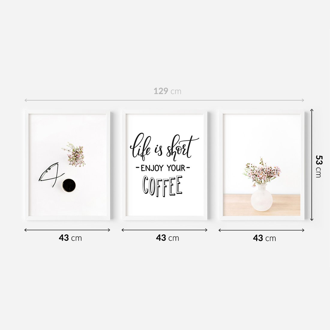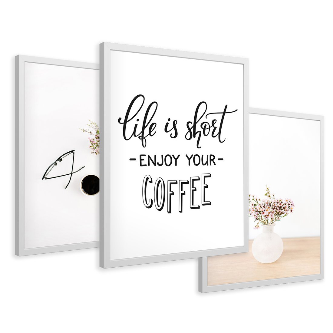 Zestaw obrazy w ramie 40x50 galeria - Kawa, kwiaty, minimalizm - rama biała