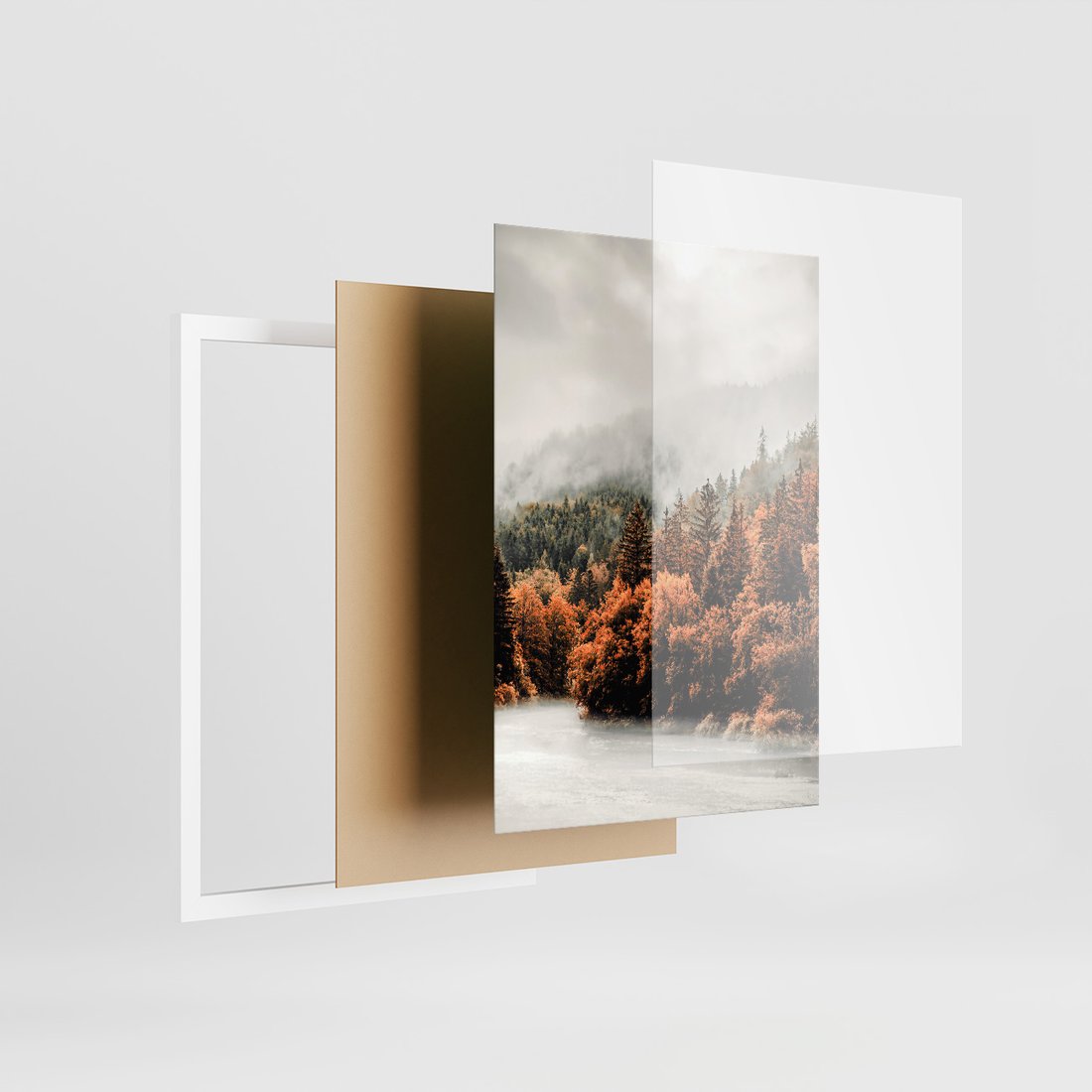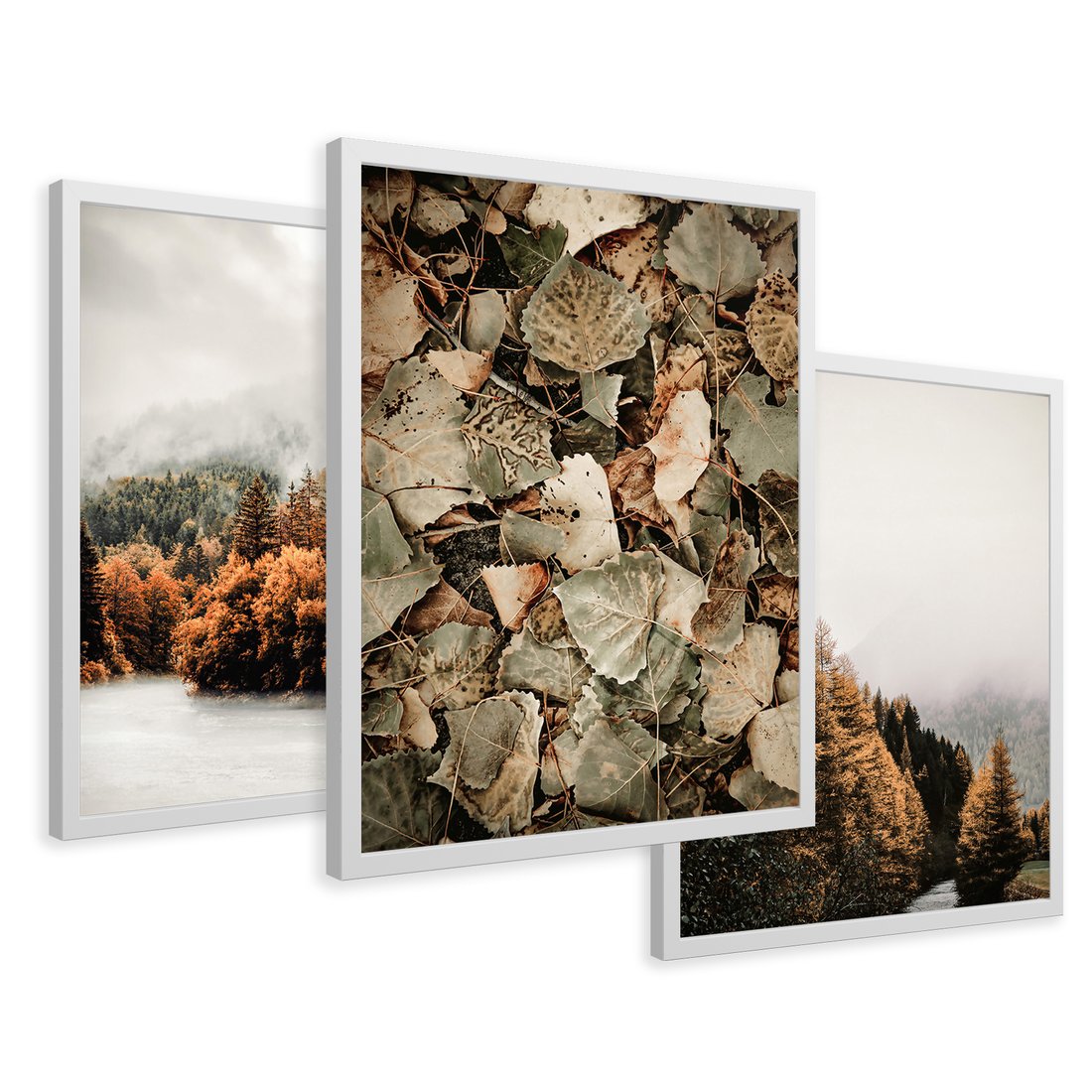 Zestaw obrazy w ramie 40x50 galeria - Krajobraz, góry, jesień, liście - rama biała