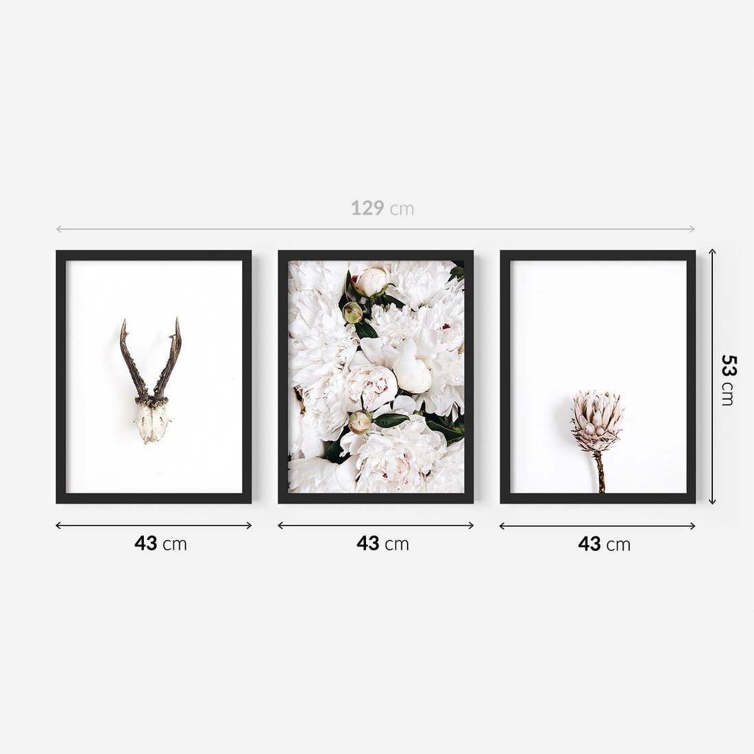 Zestaw obrazy w ramie 40x50 galeria - Kwiaty, boho, styl, minimalizm - rama czarna