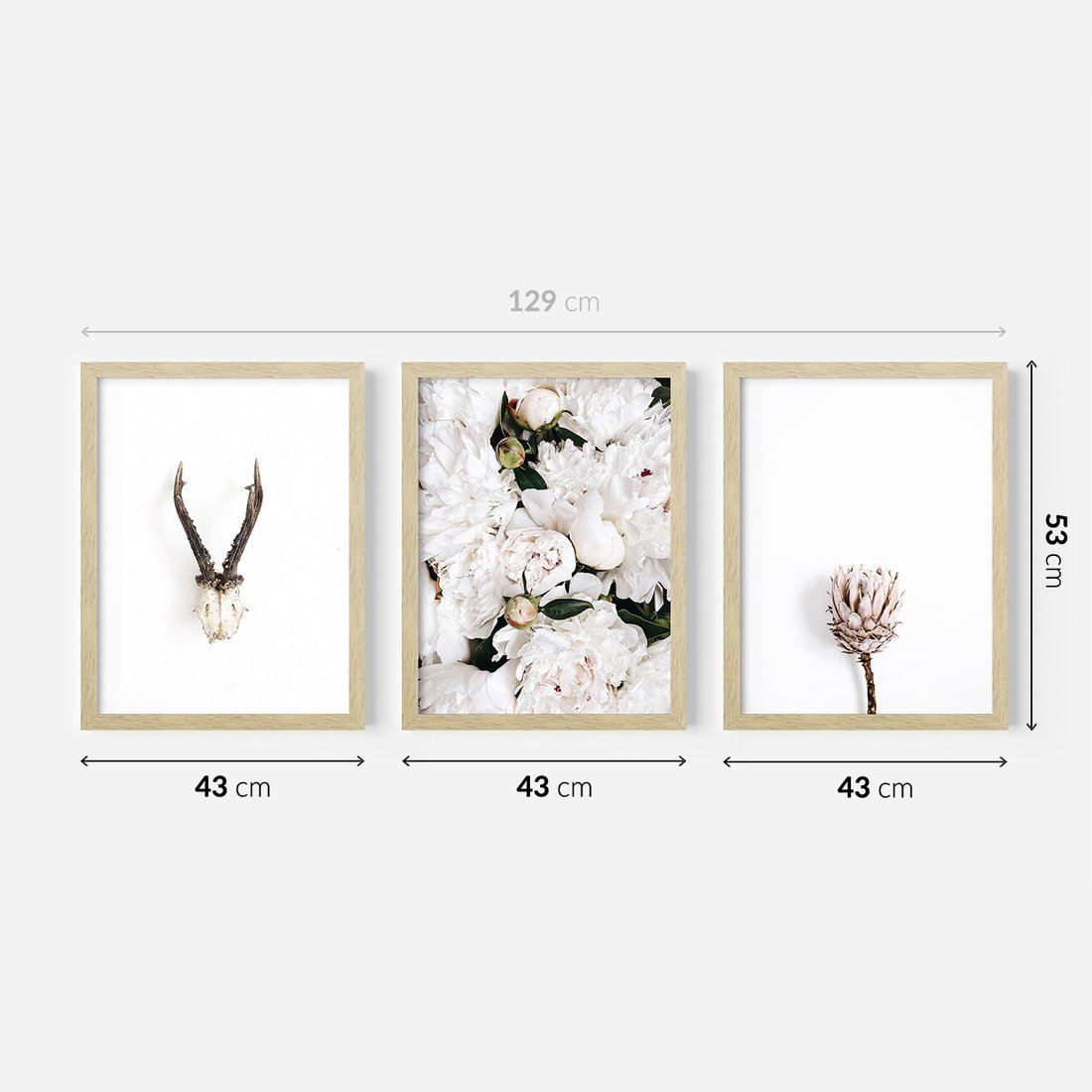 Zestaw obrazy w ramie 40x50 galeria - Kwiaty, boho, styl, minimalizm - rama drewno